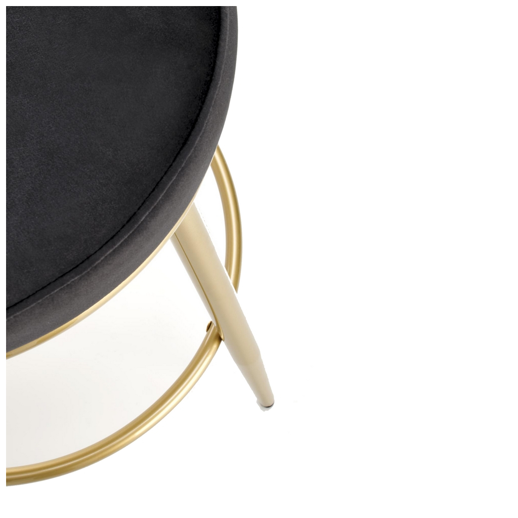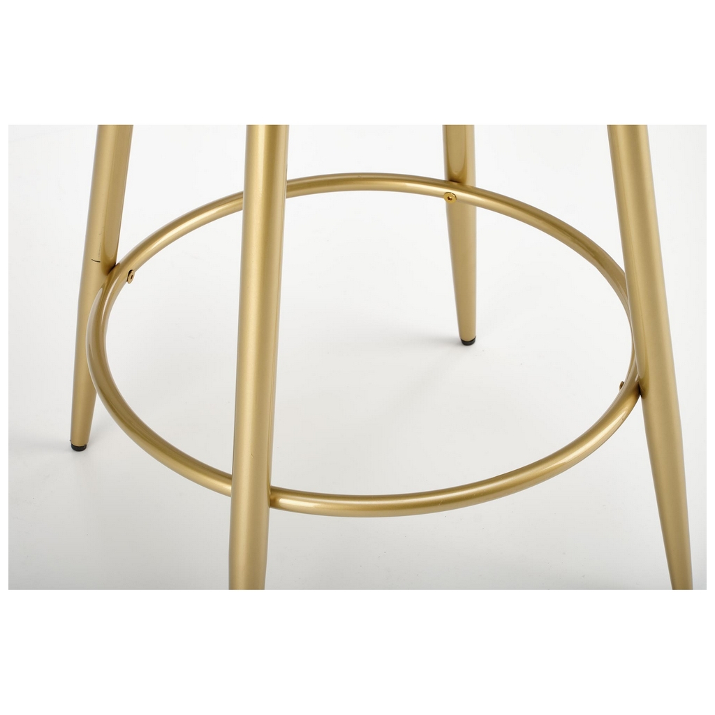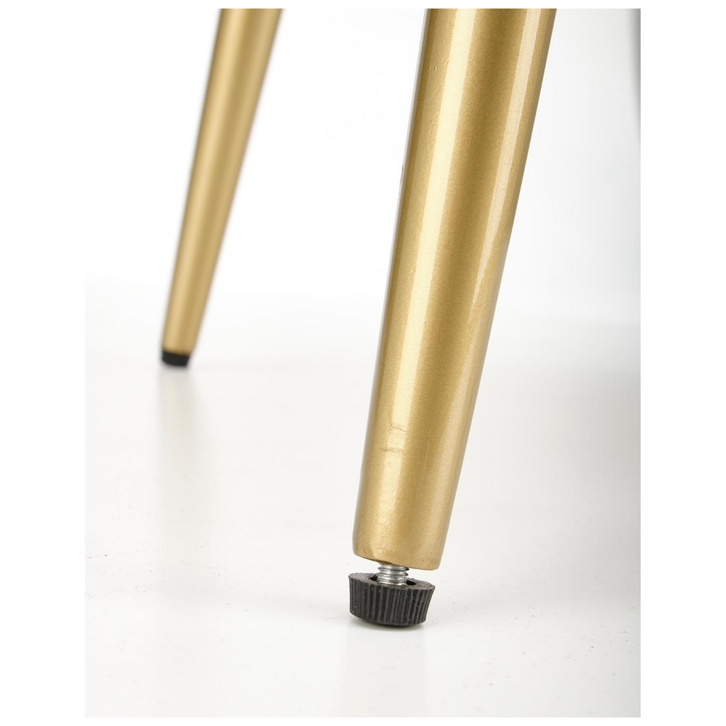 Nohy jsou z chromované ocele ve zlaté barvě a díky výraznému rozkročení a výztuze se opravdu nemusíte bát o svou rovnováhu – barová židle Burke si poradí i se 100 kg. Výztuha zároveň poslouží k opření nohou při delším sezení.