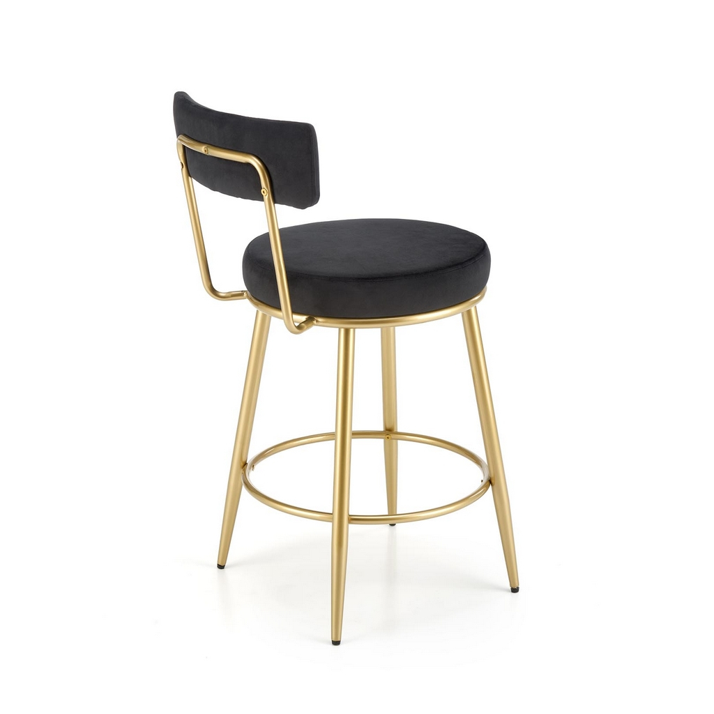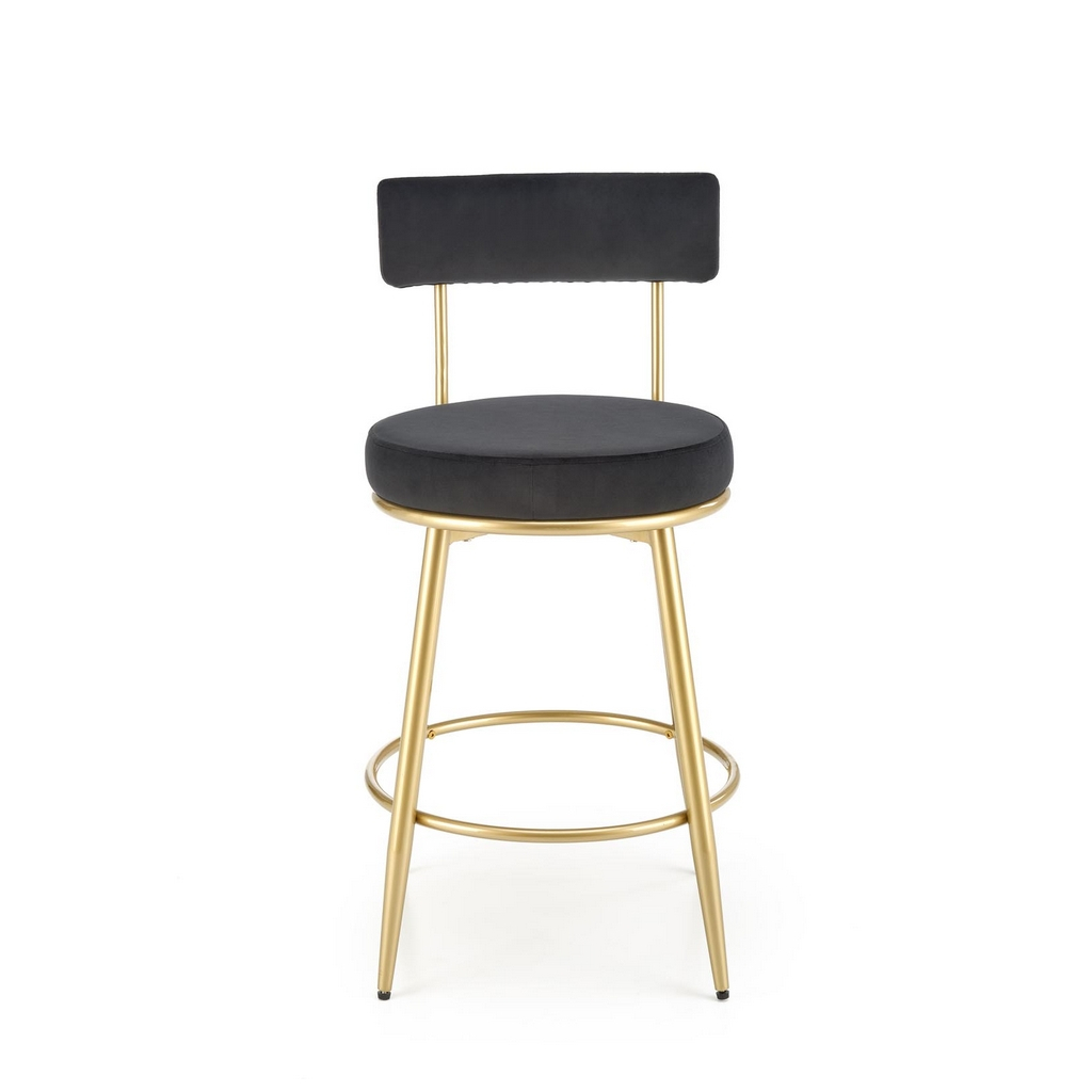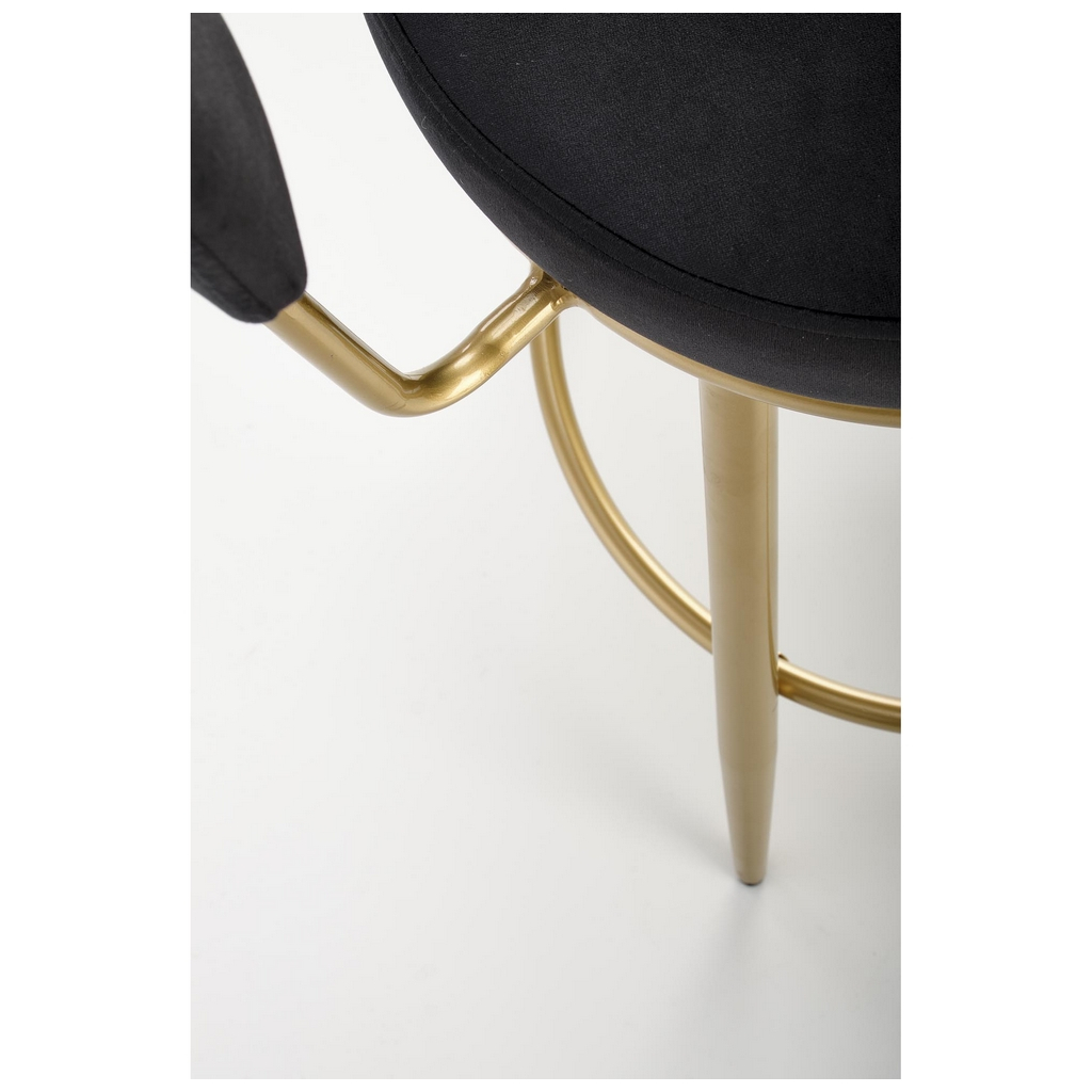 Nohy jsou z chromované ocele ve zlaté barvě a díky výraznému rozkročení a výztuze se opravdu nemusíte bát o svou rovnováhu – barová židle Burke si poradí i se 100 kg. Výztuha zároveň poslouží k opření nohou při delším sezení.
