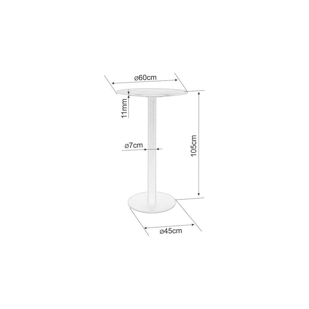 Kruhová deska s průměrem 60 cm je vyrobená z keramiky, která působí prestižně a snadno se čistí. Nohu a základnu pak tvoří práškovaná ocel. Široká podstava (průměr 45 cm) stolku zajišťuje potřebnou stabilitu.