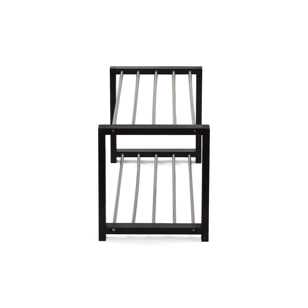 Botník Molinet nabízí praktické a elegantní řešení pro uložení obuvi v domácnosti. Díky dvěma policím šetří místo a zároveň poskytuje dostatečný prostor pro uspořádání bot. Kombinace pevného kovu a přírodního dřeva zaručuje nejen stabilitu, ale i příjemný vzhled, který snadno zapadne do moderní předsíně nebo chodby.