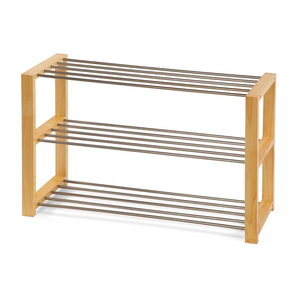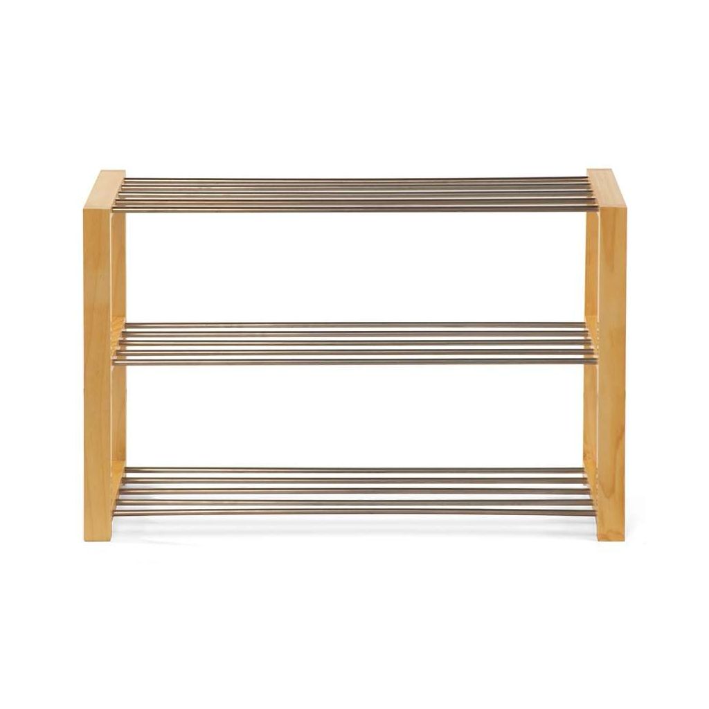 Botník Molinet XL je praktickým řešením pro udržení pořádků ve vaší předsíni nebo šatně. Jeho kombinace pevného kovu a přírodního dřeva zajišťuje stabilitu i příjemný estetický vzhled. Díky dvěma policím umožňuje snadné a přehledné uspořádání obuvi, což šetří místo a zároveň umožňuje dobré větrání bot.