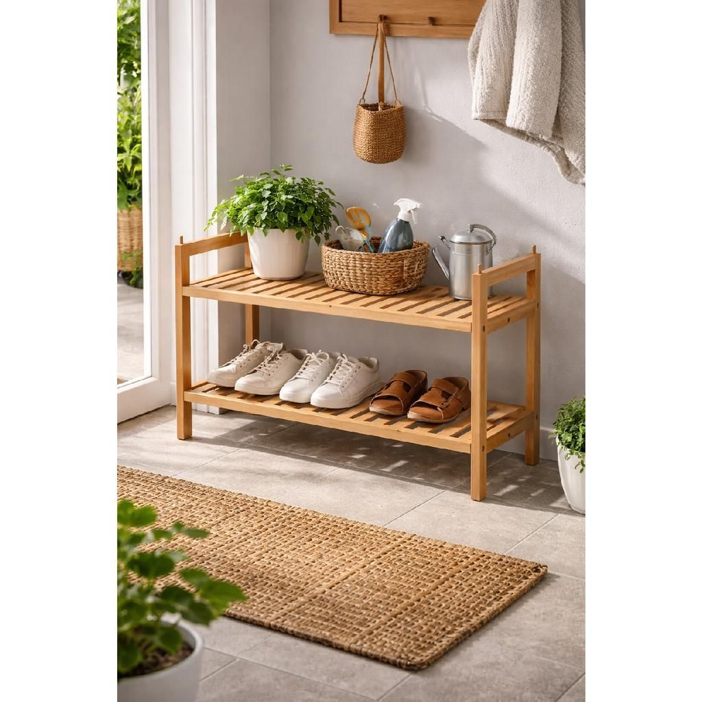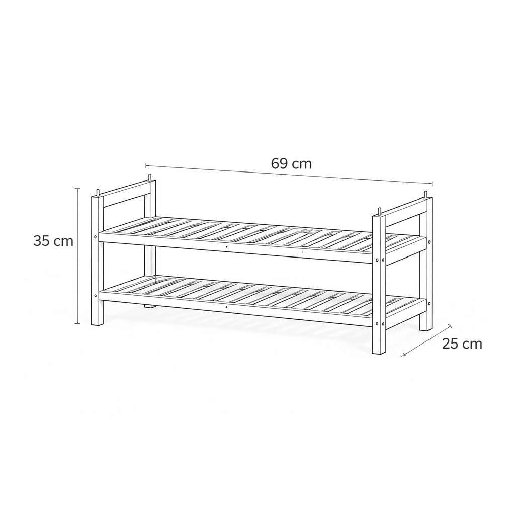 Jeho dve otevřené police zajišťují nejen snadný přístup k obuvi, ale také dostatečnou cirkulaci vzduchu, což přispívá k lepší péči o vaše boty. Celý botník je vyroben z přírodního dřeva, což mu dodává přírodní a příjemný vzhled vhodný do různých typů interiérů.