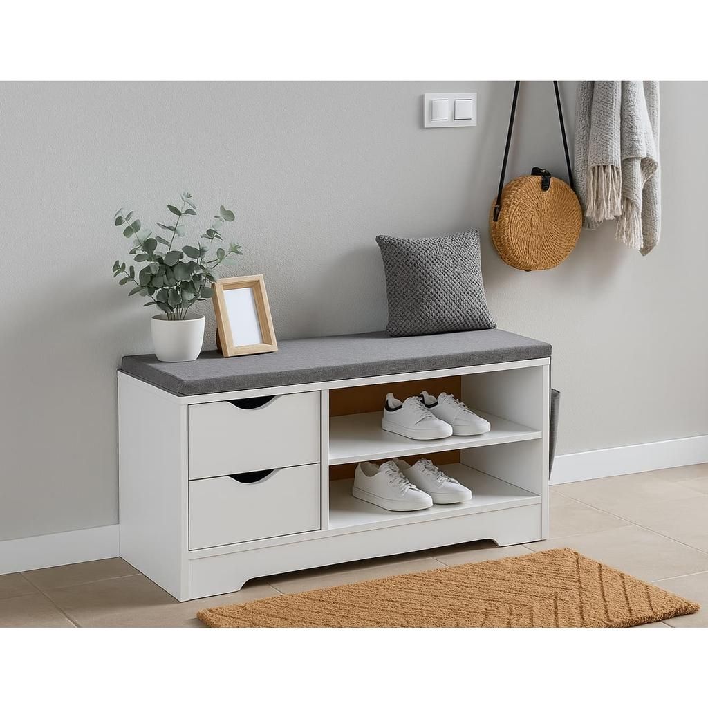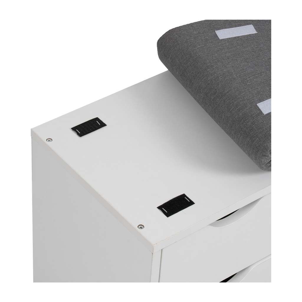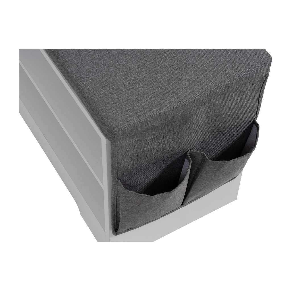 Součástí botníku je i pěnový sedák s látkovým potahem, který zajišťuje pohodlné a komfortní obouvání. Konstrukce z dřeva dodává produktu pevnost a stabilitu, zatímco látka dodává jemný a příjemný vzhled. Díky rozumné hmotnosti 15,2 kg je botník snadno přemístitelný dle potřeby.