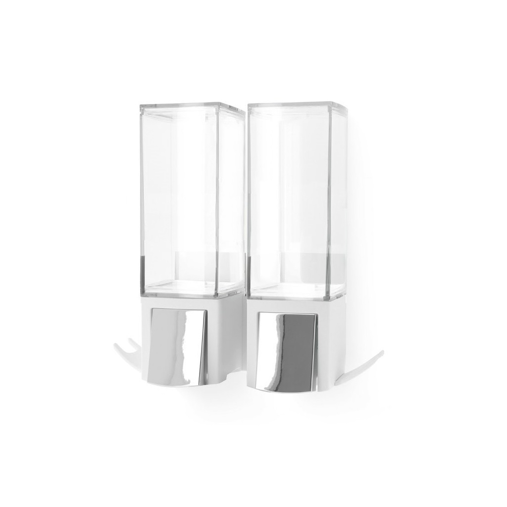 Dvojitý dávkovač tekutého mýdla Compactor Edge je praktický pomocník, který vám usnadní mytí rukou nejen na toaletách nebo v koupelnách. Díky mýdlu, které si nadávkujete přesně podle potřeby, budete mít umývání mnohem snazší. Dávkovač navíc po stranách disponuje úchyty k zavěšení žiletky či houbiček.