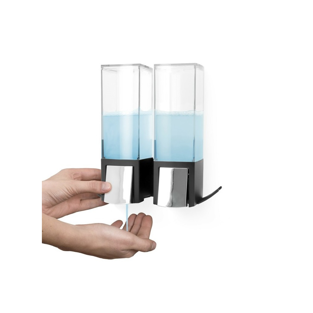 Dvojitý dávkovač tekutého mýdla Compactor Edge je praktický pomocník, který vám usnadní mytí rukou nejen na toaletách nebo v koupelnách. Díky mýdlu, které si nadávkujete přesně podle potřeby, budete mít umývání mnohem snazší. Dávkovač navíc po stranách disponuje úchyty k zavěšení žiletky či houbiček.