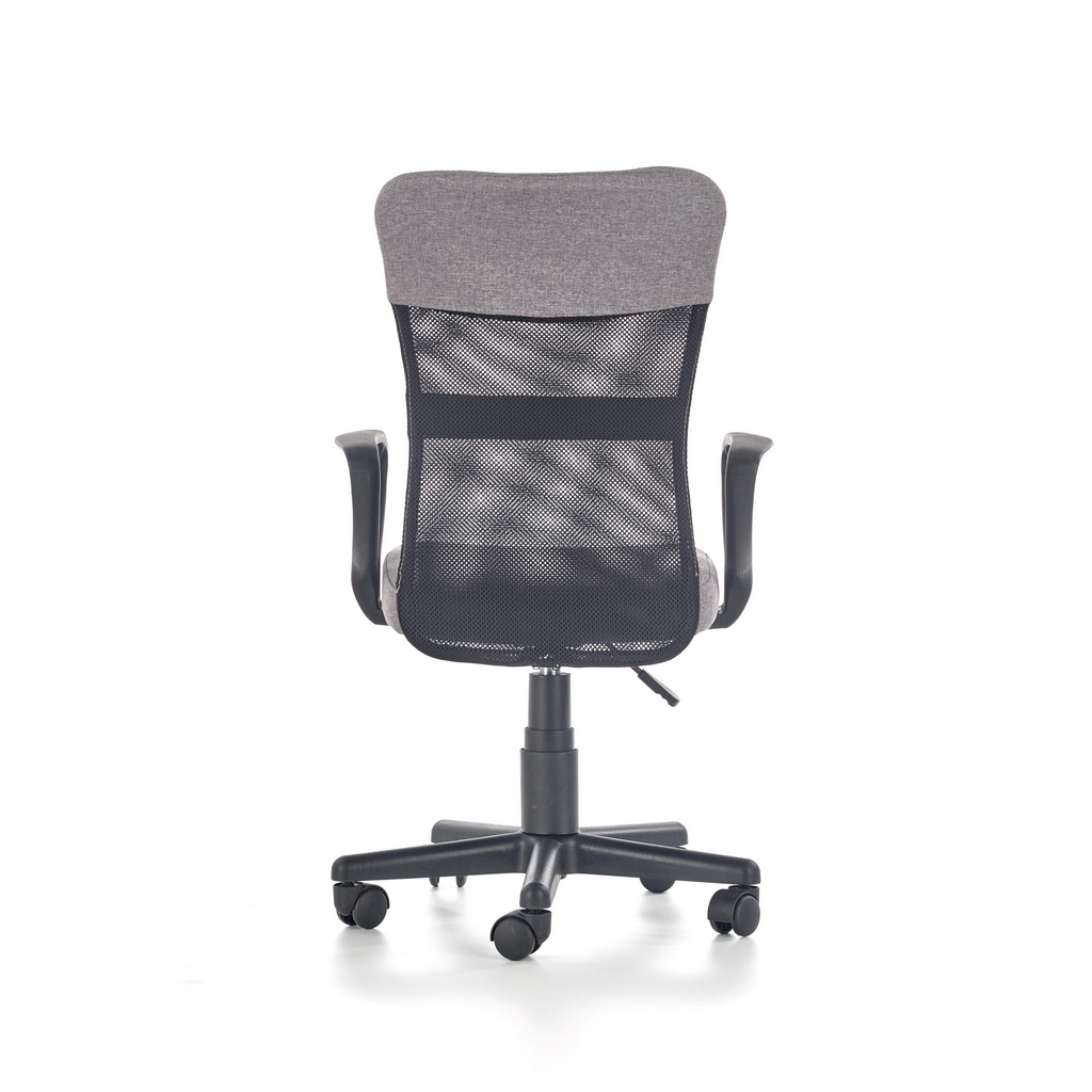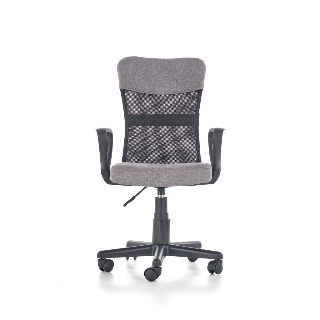 Tento model dětské otočné židle má látkový potah na sedáku a části opěráku. Zbytek opěráku zad je potažený vzdušnou pružnou síťovinou.