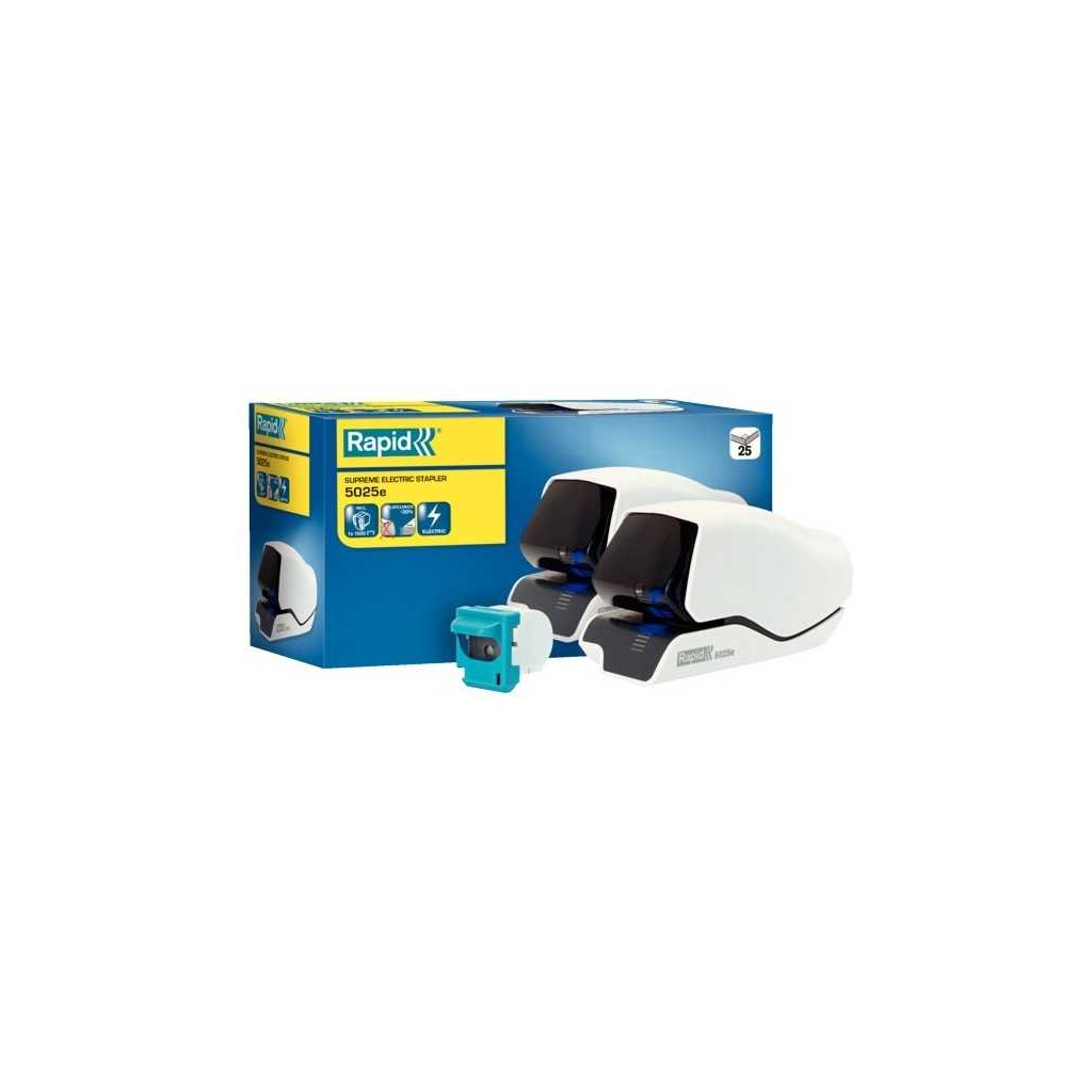 Elektrická sešívačka Rapid 5025e je ideálním pomocníkem pro snižování objemu papírových dokumentů a zajištění jejich pevného spojení s minimální námahou. Její uživatelsky přívětivá koncepce a spolehlivost ji činí nezbytným vybavením každé kanceláře nebo pracovny.
