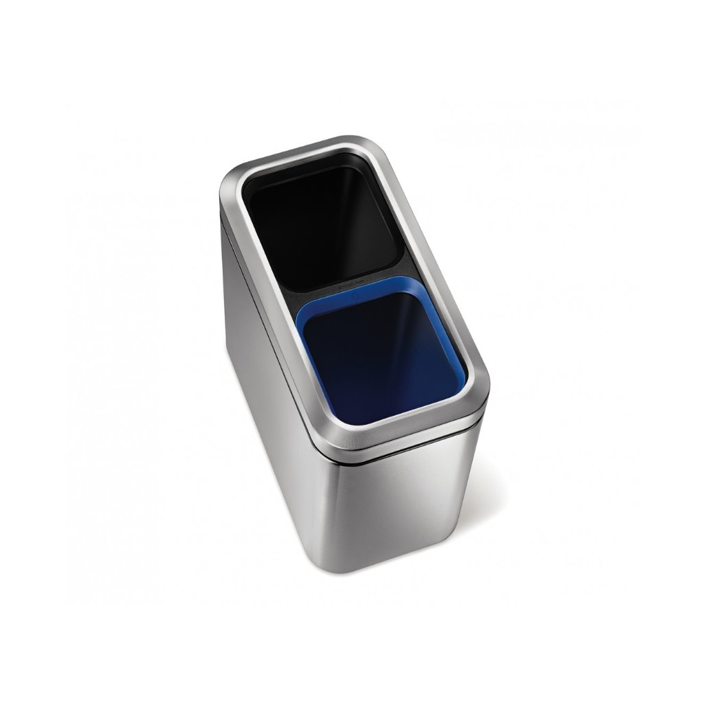 Hranatý otevřený koš na tříděný odpad 10 + 10 l, matná ocel, nerez
