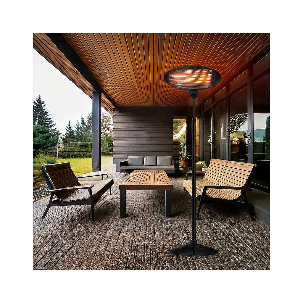 Díky odolnému krytí IPX4 odolává stříkající vodě, což ho staví mezi ideální produkty pro venkovní použití. Nastavitelná výška až 210 cm spolu s jednoduchou manipulací umožňuje přesné nasměrování tepla tam, kde ho potřebujete nejvíce.