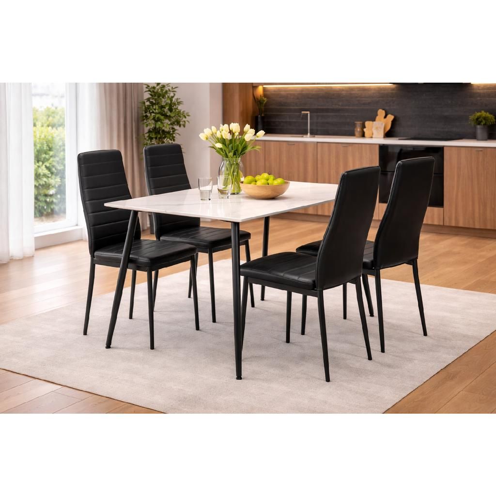 Jídelní set Olbia 4+1, bílá / černá