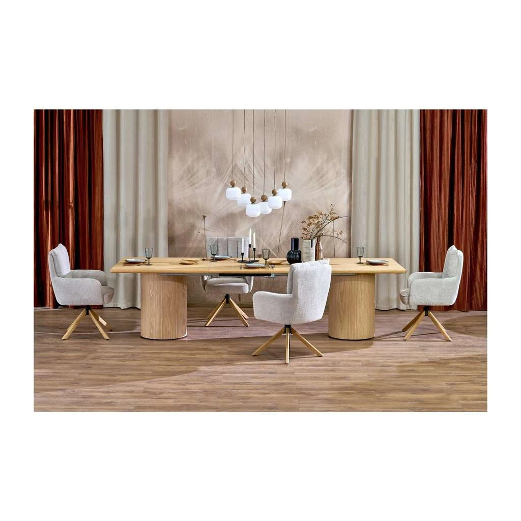 Vyrobený ze kvalitního dřeva, stůl přináší přírodní a nadčasový vzhled, který skvěle doplní různé styly interiéru. Robustní konstrukce zajistí stabilitu a dlouhou životnost, zatímco rozkládací mechanismus umožňuje snadné přizpůsobení velikosti podle aktuálních potřeb.