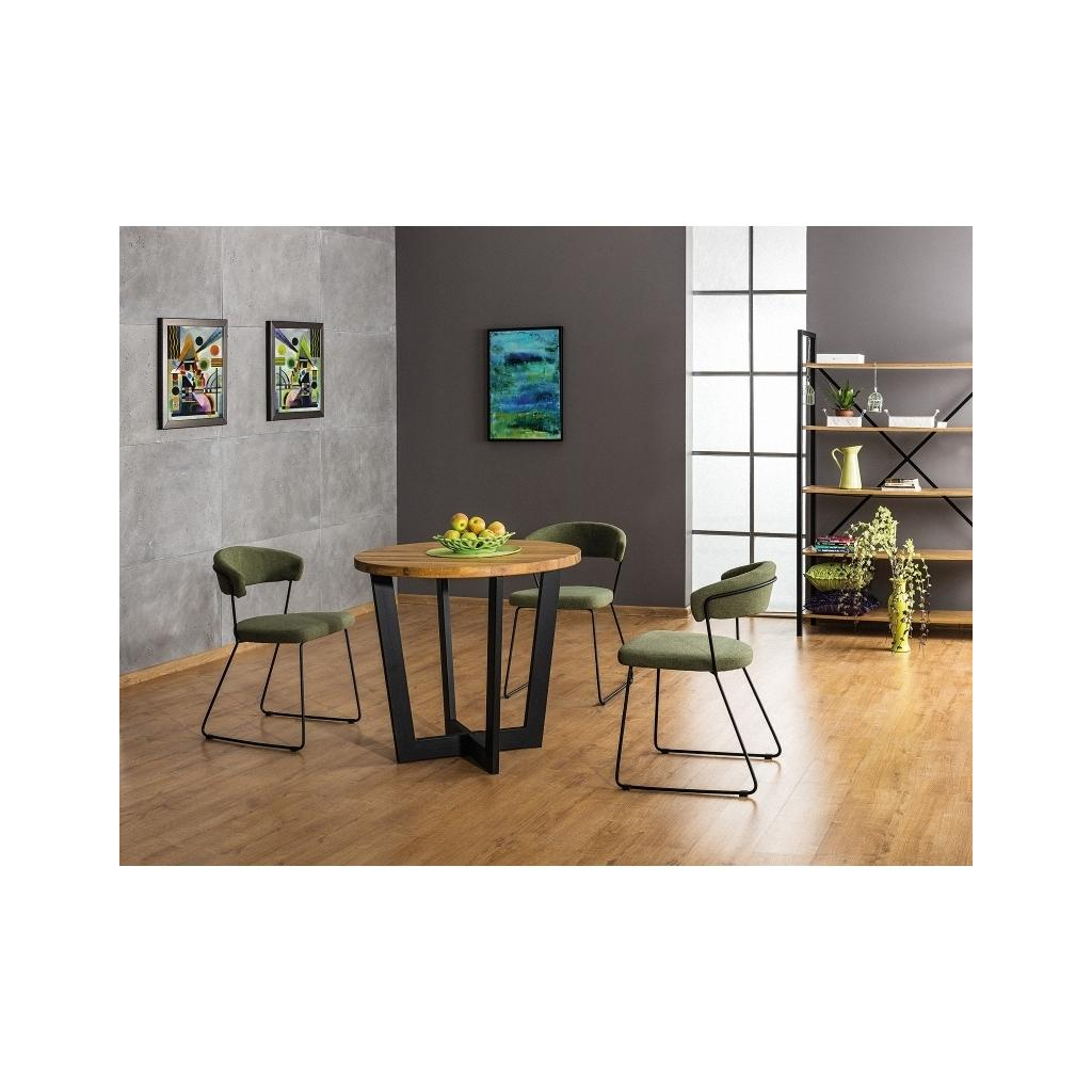 Moderní jídelní stůl z masivního dřeva v kombinaci s kovovou podnoží vytváří nejnovější trend v designu nábytku a zdůrazňuje přirozenou krásu dřeva.