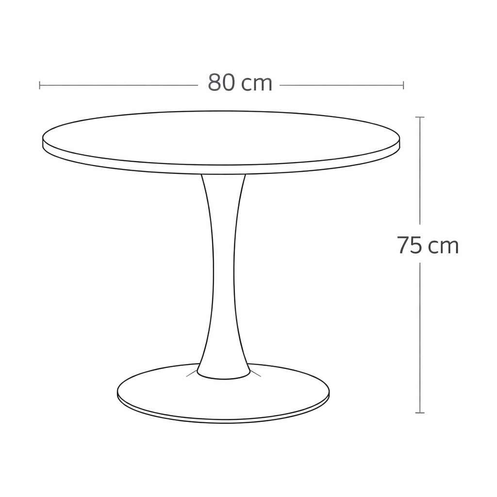 Jídelní stůl Cubitas 80 je ideální volbou pro ty, kdo hledají příjemný stůl s elegantním a minimalistickým designem. Díky své kompaktní velikosti se skvěle hodí do menších prostor, jako jsou kuchyně, kavárny nebo moderní kanceláře. Kulatá deska z dřeva přináší přírodní teplo a příjemný vzhled, zatímco centrální kovová podnož zajišťuje pevnost a stabilitu při používání.