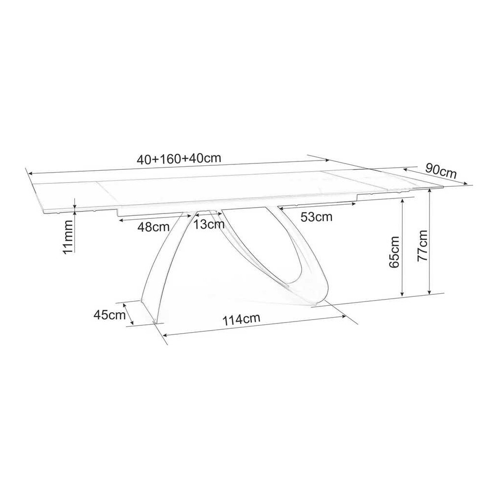 Deska stolu je vyrobená z tvrzeného skla a italské keramiky. Tyto materiály se spojují, aby vytvořily mimořádně odolný, ale i vizuálně úchvatný povrch. Efekt přepychu umocňuje unikátní dekor desky.