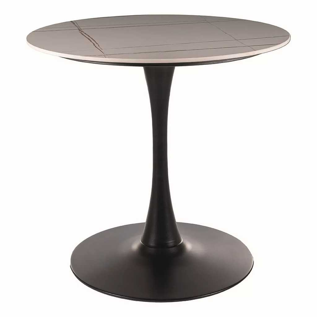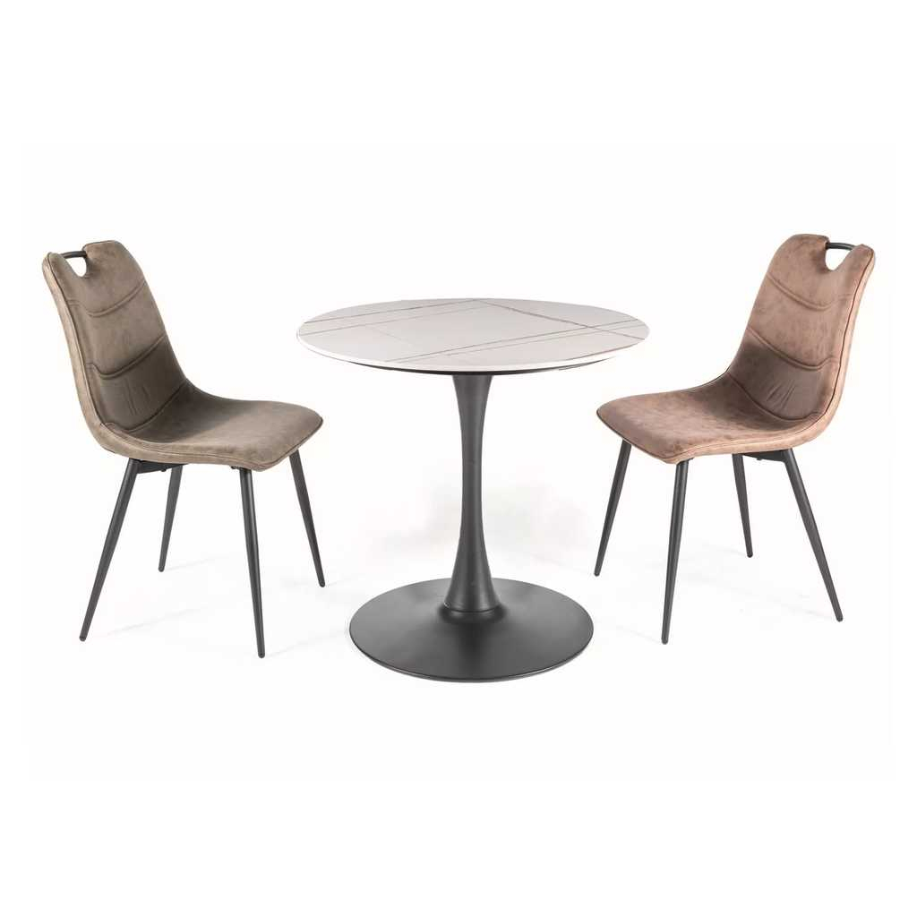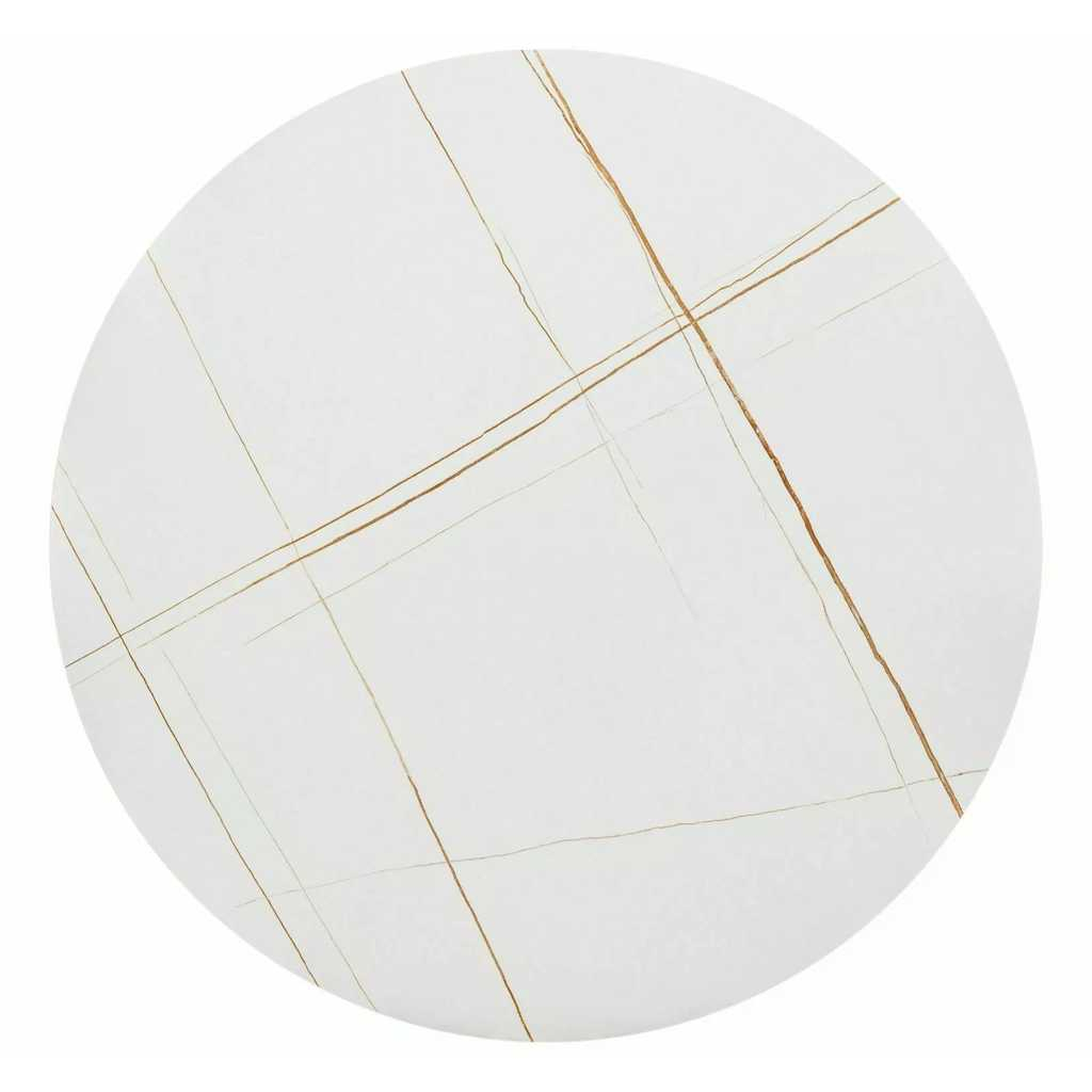 Horní desku tvoří kruh z keramiky o síle 12 mm a průměru 80 cm. Její matný povrch zdobí decentní žíhaná textura.