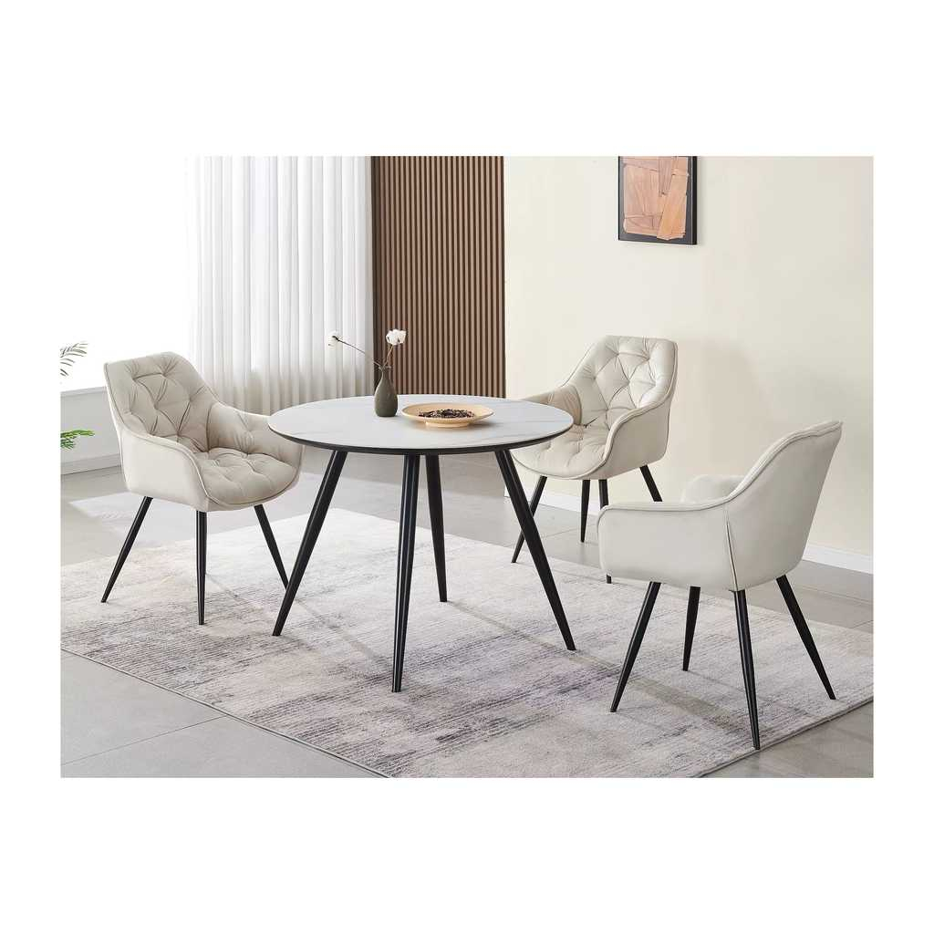 Jídelní stůl Ideal II přináší do vašeho interiéru elegantní a moderní řešení pro stolování. Jeho kulatá deska z kvalitní keramiky s efektem mramoru představuje odolný a snadno udržovatelný povrch, který vypadá stylově a vydrží běžné i náročnější použití. Kovová podnož zajišťuje stabilitu a pevnost celé konstrukce.