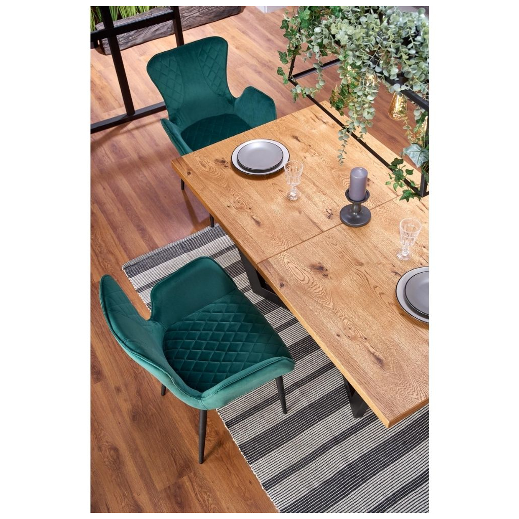 Deska stolu je vyrobena z MDF v kombinaci s masivním dřevem na okrajích v barevném provedení dub. Nohy stolu jsou konstruovány tak, aby nepřekážely při sezení a současně zajistily stolu maximální pevnost. Tu umocňuje jejich provedení z práškované oceli v černé barvě.