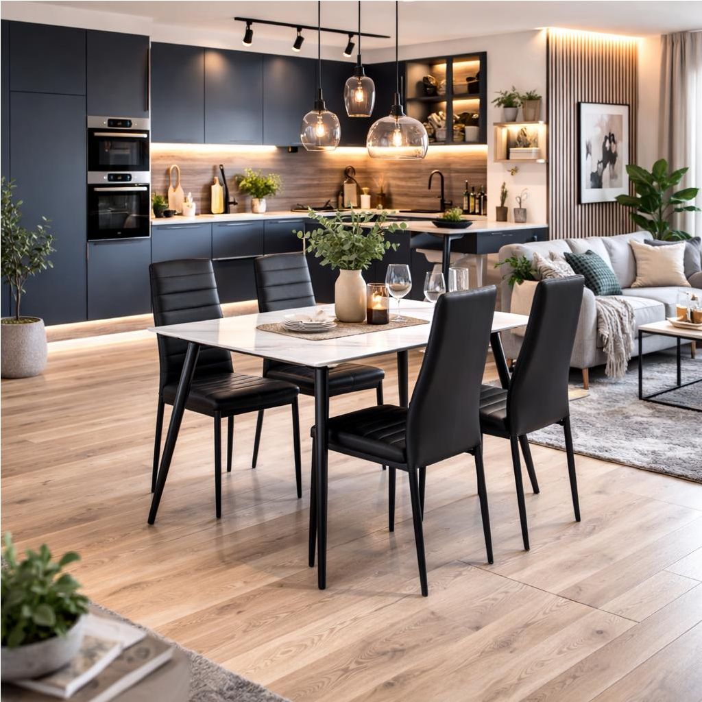 Díky svým rozměrům poskytuje dostatek prostoru pro pohodlné sezení až pro čtyři osoby, což z něj činí skvělý doplněk do menších jídelních koutů i moderních bytů. Obdélníková deska přispívá k jeho funkčnosti a snadné kombinovatelnosti s různými typy židlí a dekorací.