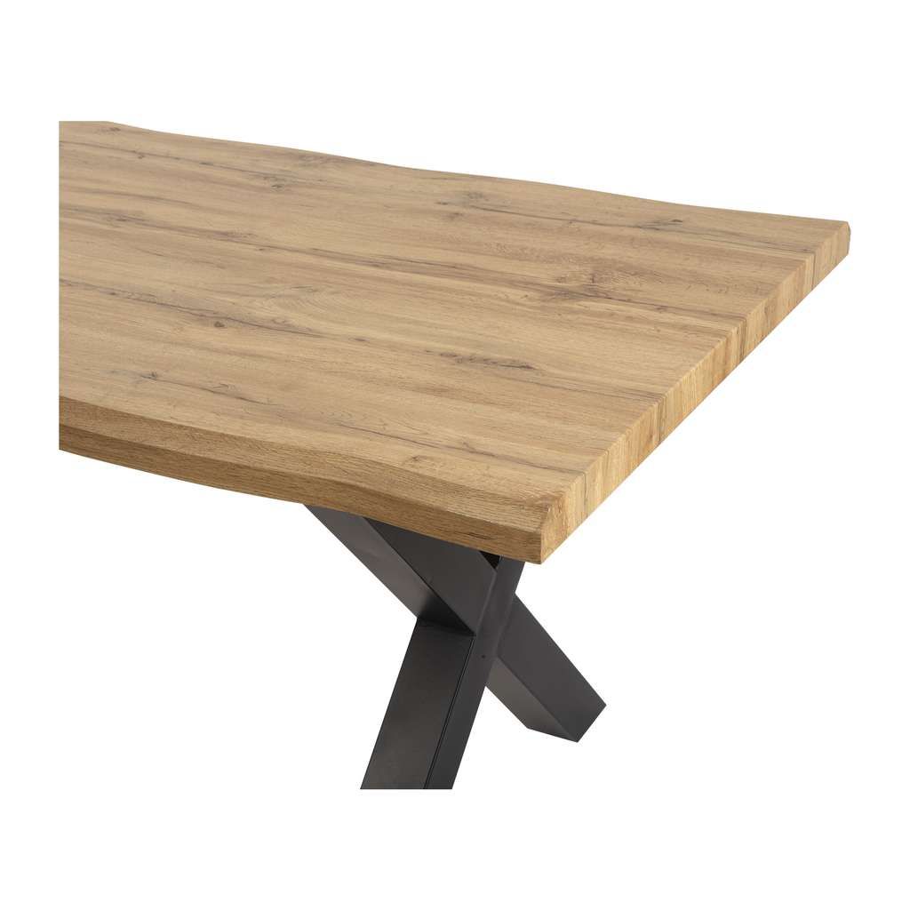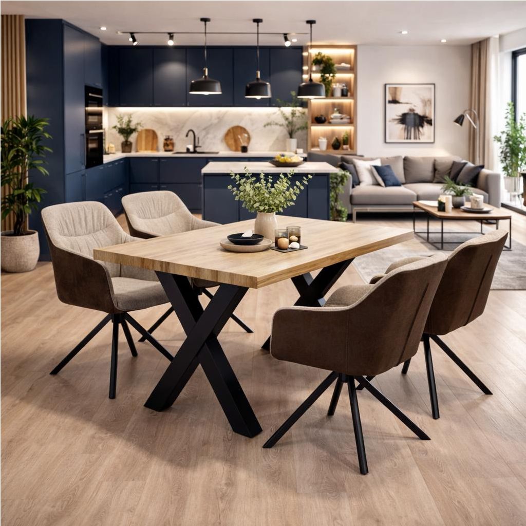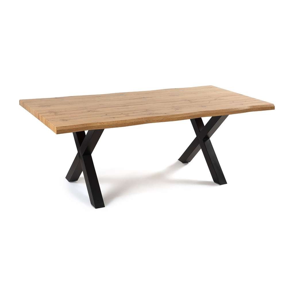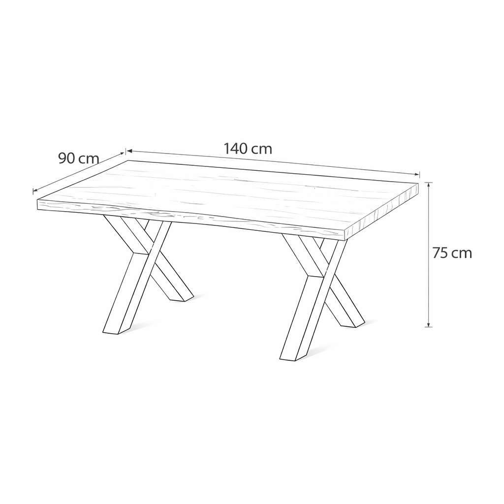 Stůl nabízí vysokou stabilitu díky kombinaci masivního dřevěného povrchu a pevné kovové podnože. Tento kontrast materiálů dodává stolové konstrukci výrazný a nadčasový vzhled, který se snadno přizpůsobí různým interiérovým stylům – od moderního po industriální nebo minimalistický.