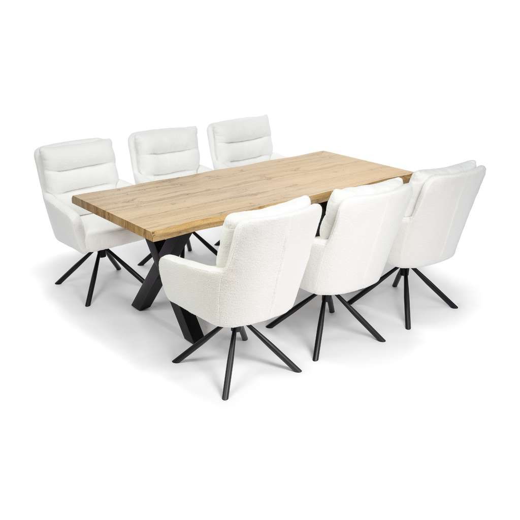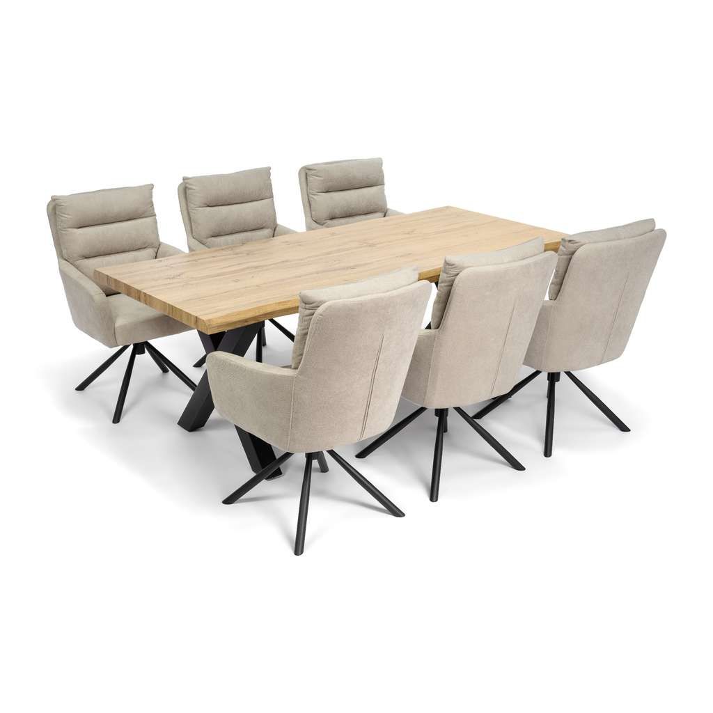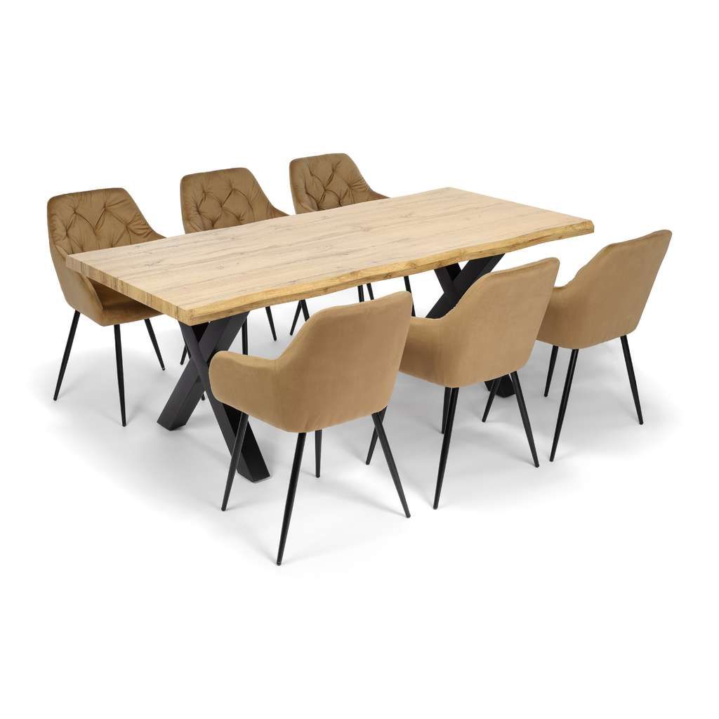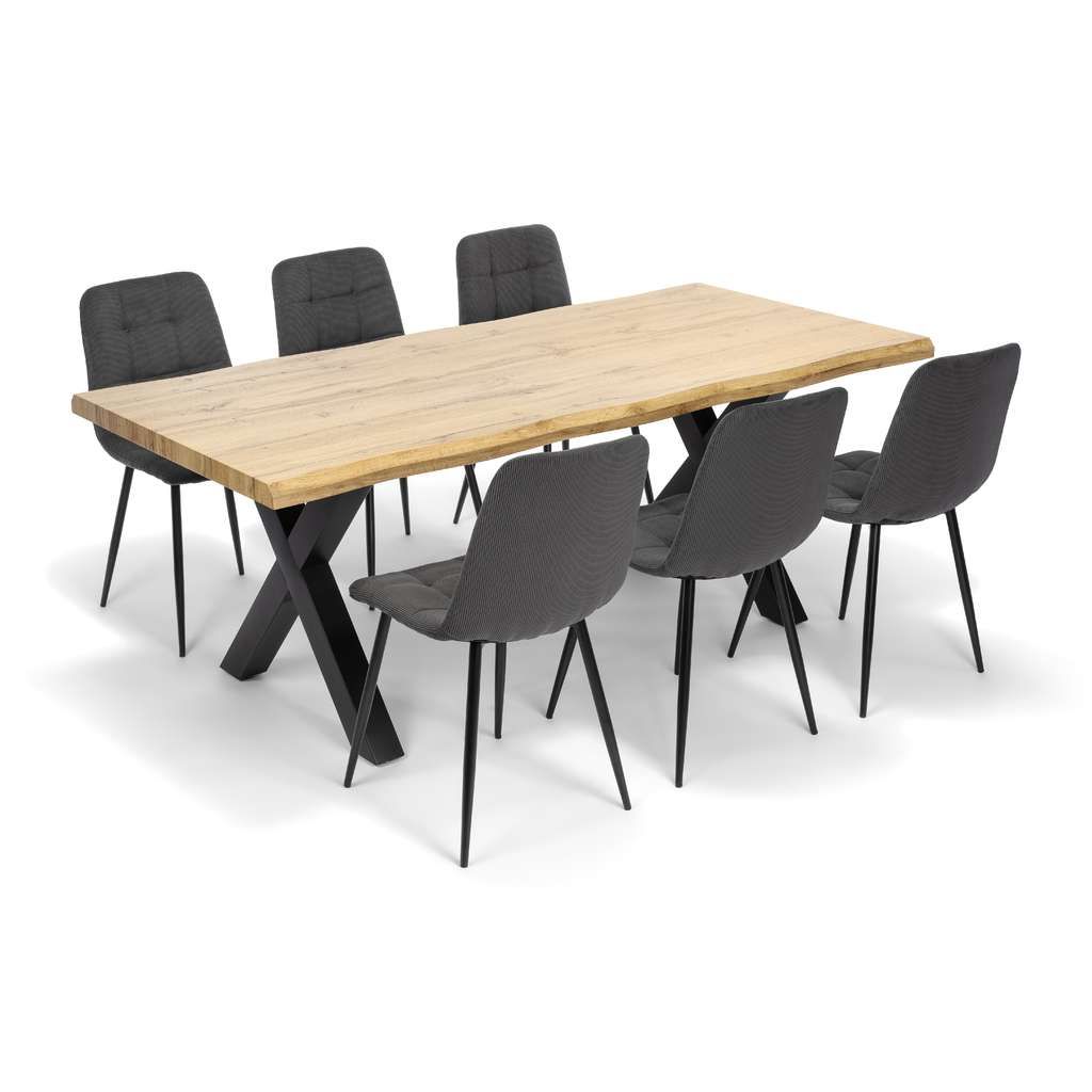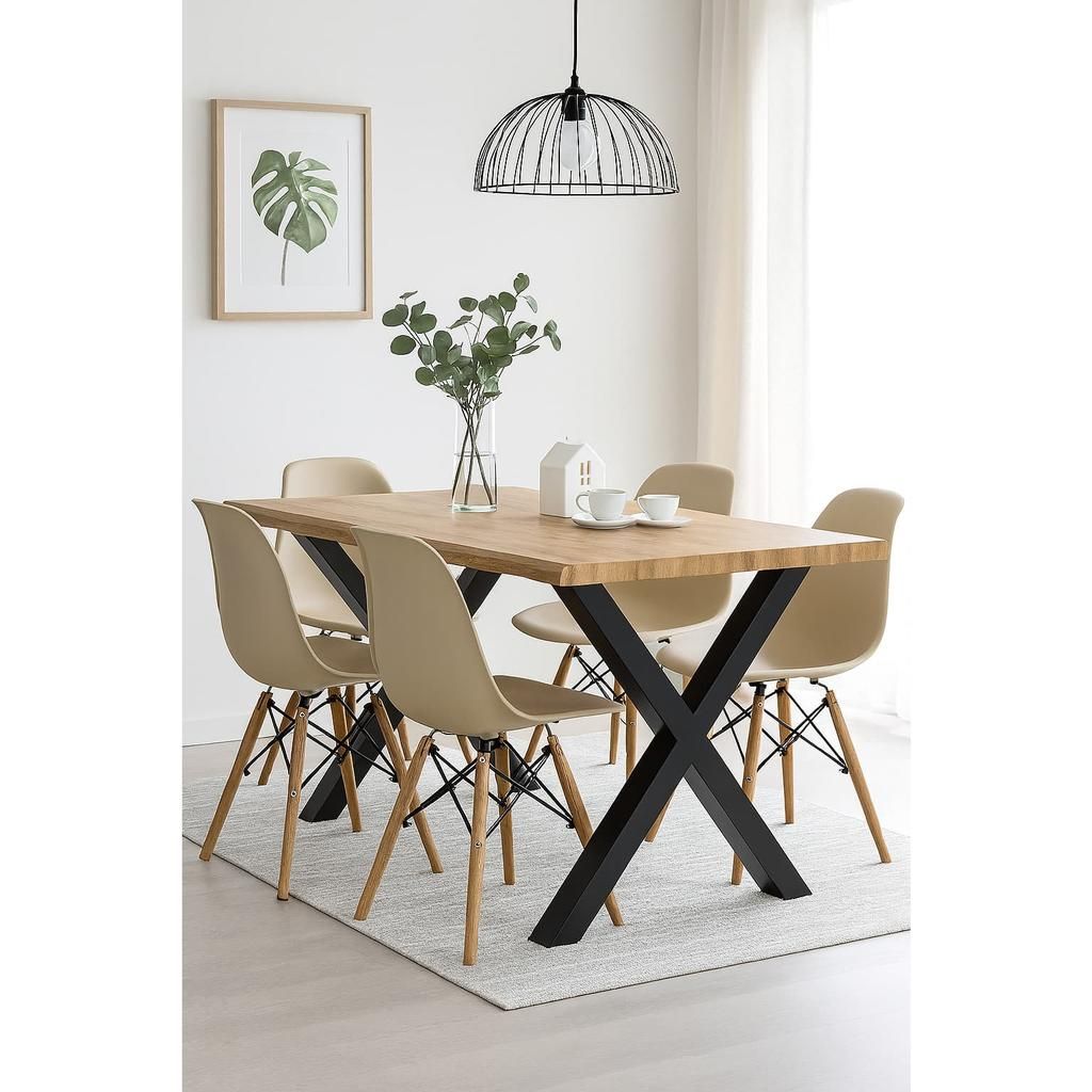 Stůl je navržen tak, aby poskytoval dlouhodobou stabilitu a odolnost při každodenním používání. Díky pevné konstrukci je ideální volbou pro rodinné obědy, večeře s přáteli nebo jiné společenské příležitosti. Jeho nadčasový design přináší do prostoru příjemný kontrast mezi teplým dřevem a chladným kovem a zároveň vytváří elegantní a útulnou atmosféru.