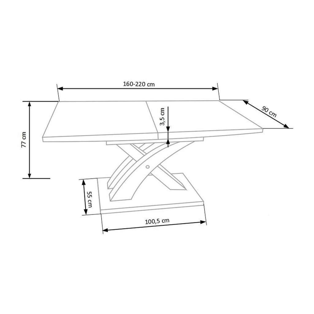Velkou výhodou jídelního stolu je jeho praktické zpracování, protože si jej můžete rozložit a vytvořit tak další plochu pro umístění věcí či hostů. Základní rozměry stolu jsou 160 x 90 cm, po rozložení pak 220 x 90 cm.