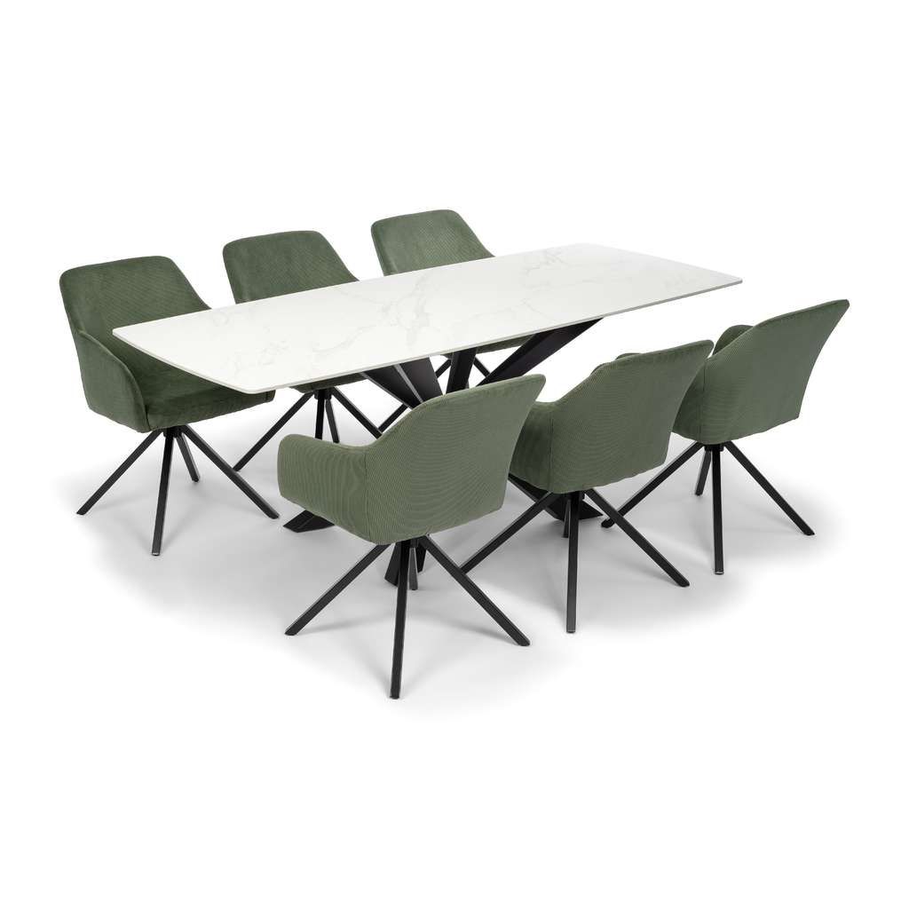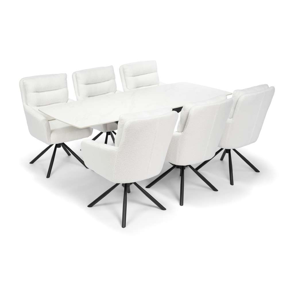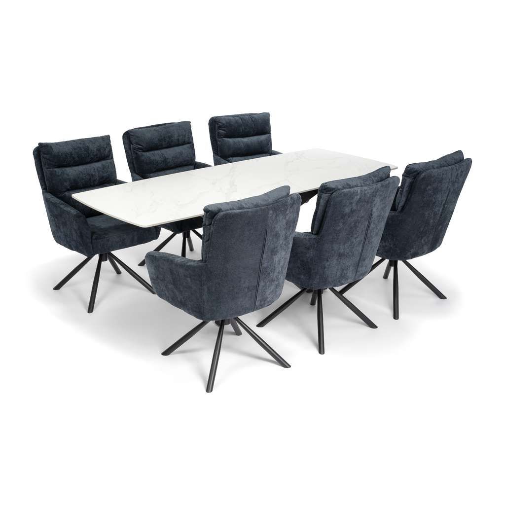 Jídelní stůl Serdan představuje ideální volbu pro ty, kteří hledají kombinaci moderního designu a kvalitního provedení. Díky robustní kamenné desce je nejen odolný vůči poškození, ale také působí velmi elegantně a luxusně. Velká plocha stolu o rozměrech 200x80 cm poskytuje dostatek místa pro pohodlné stolování až pro osm osob.