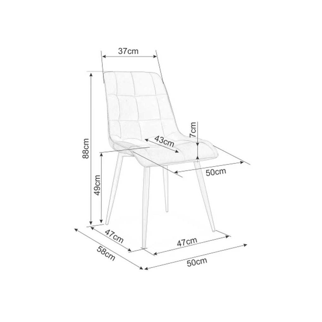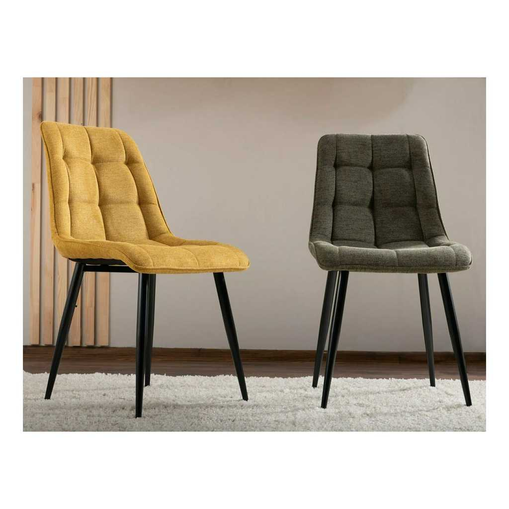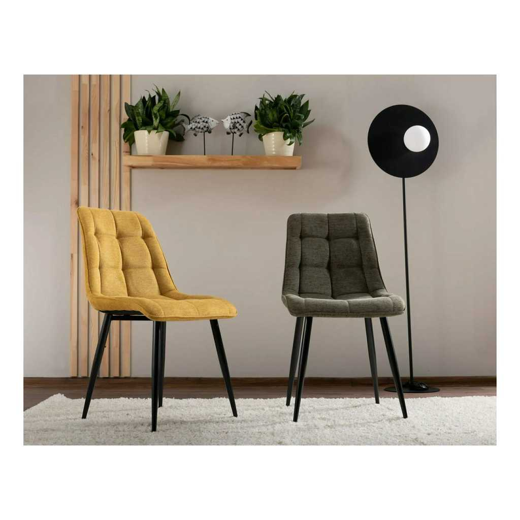 Konstrukce a úzké nohy z kovu dodávají židli stabilitu, zároveň ale působí vzdušně. O efektní vzhled a pohodlí se stará polstrování a potah z hruběji tkané látky. Ta je zvláštní moderním prošíváním.