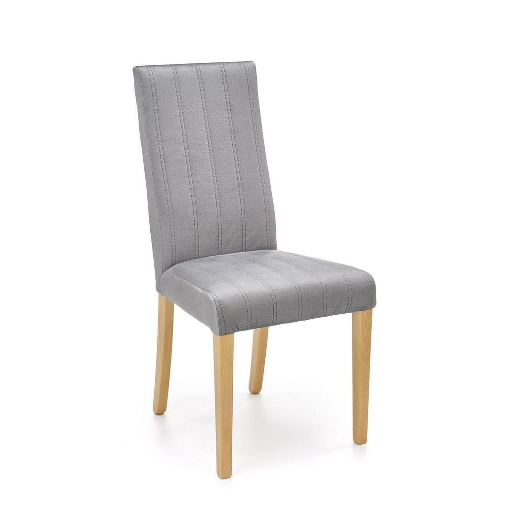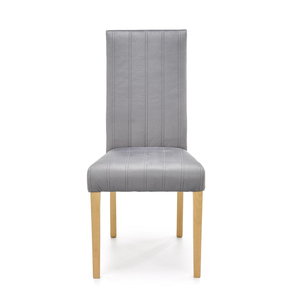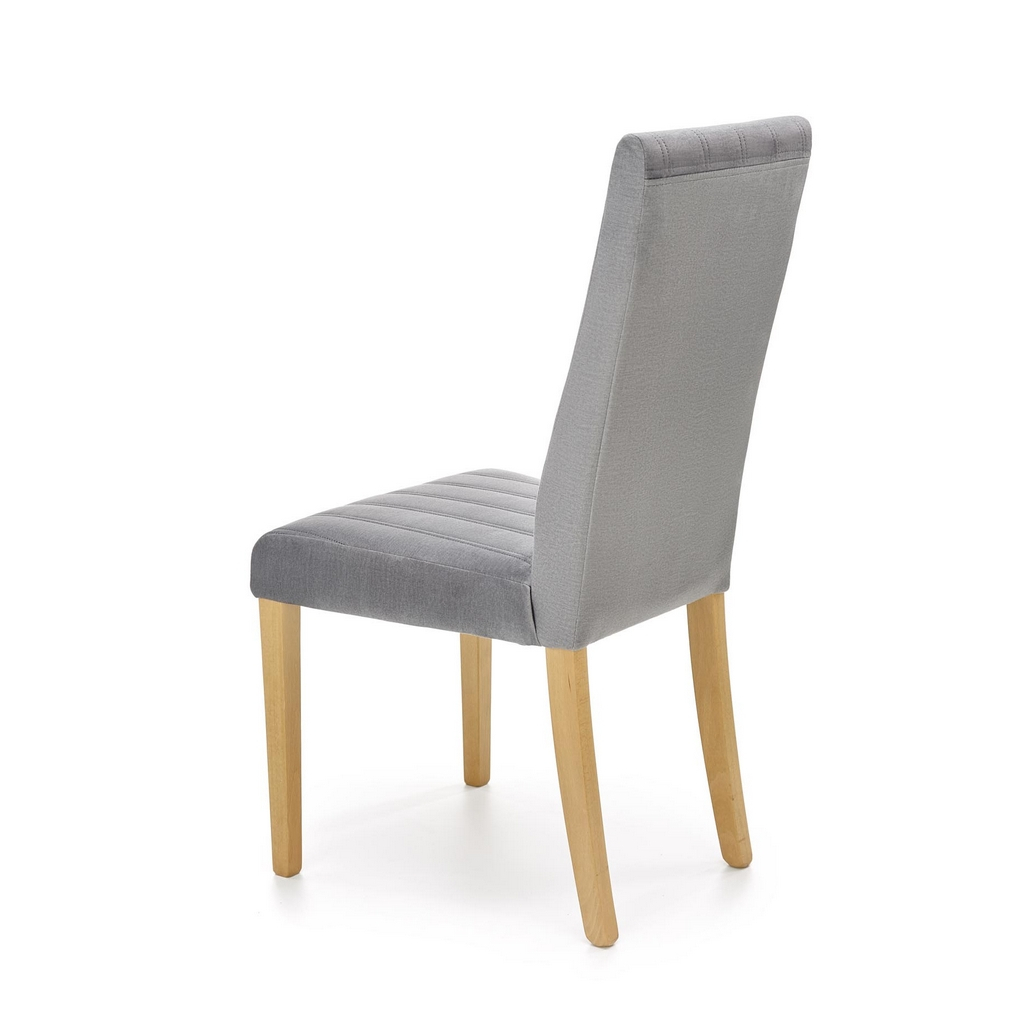 Nohy židle Diego 3 jsou z bukového masivu v přírodní povrchové úpravě. Celá sedací část je pak potažená hebkou látkou, kterou zdobí podélné prošívání.