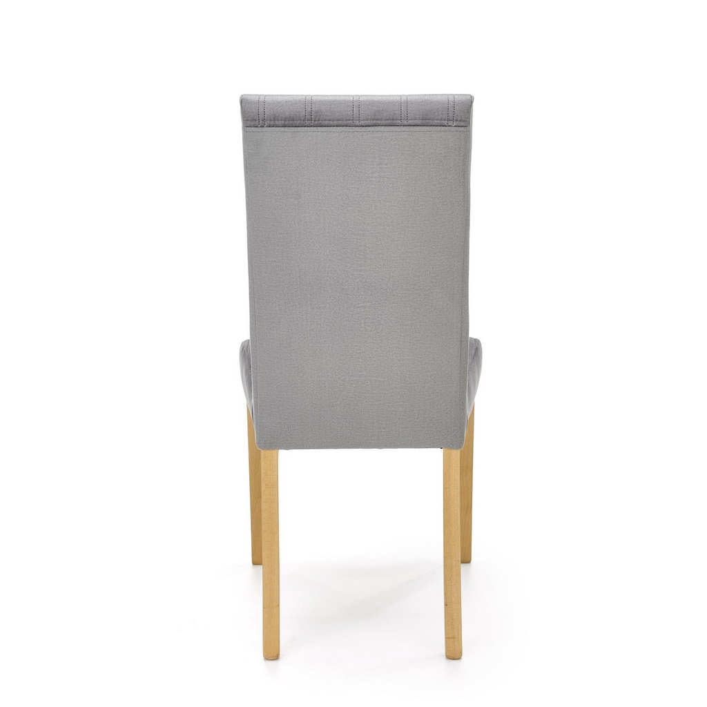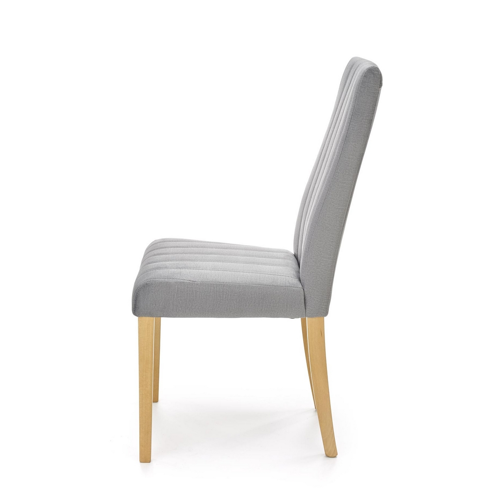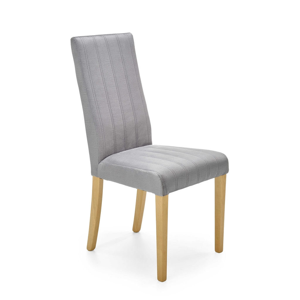 Nohy židle Diego 3 jsou z bukového masivu v přírodní povrchové úpravě. Celá sedací část je pak potažená hebkou látkou, kterou zdobí podélné prošívání.