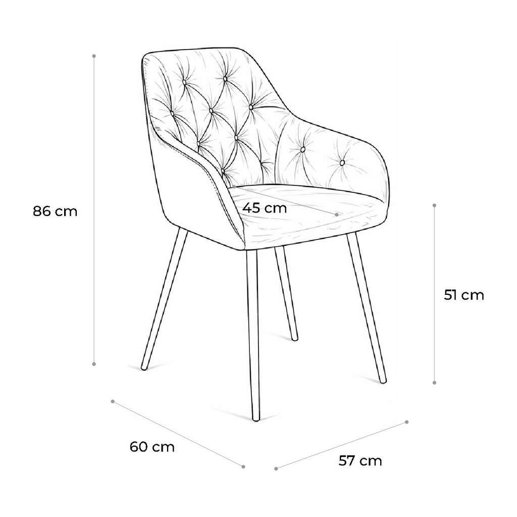 Židle je čalouněná kvalitní látkou, která je příjemná na dotek a nabídne vám pohodlí při každém sezení. Výrazný design v kombinaci moderní klasiky a retro stylu skvěle oživí interiér a stane se praktickým i estetickým prvkem vašeho domu či bytu.