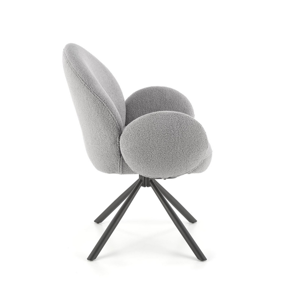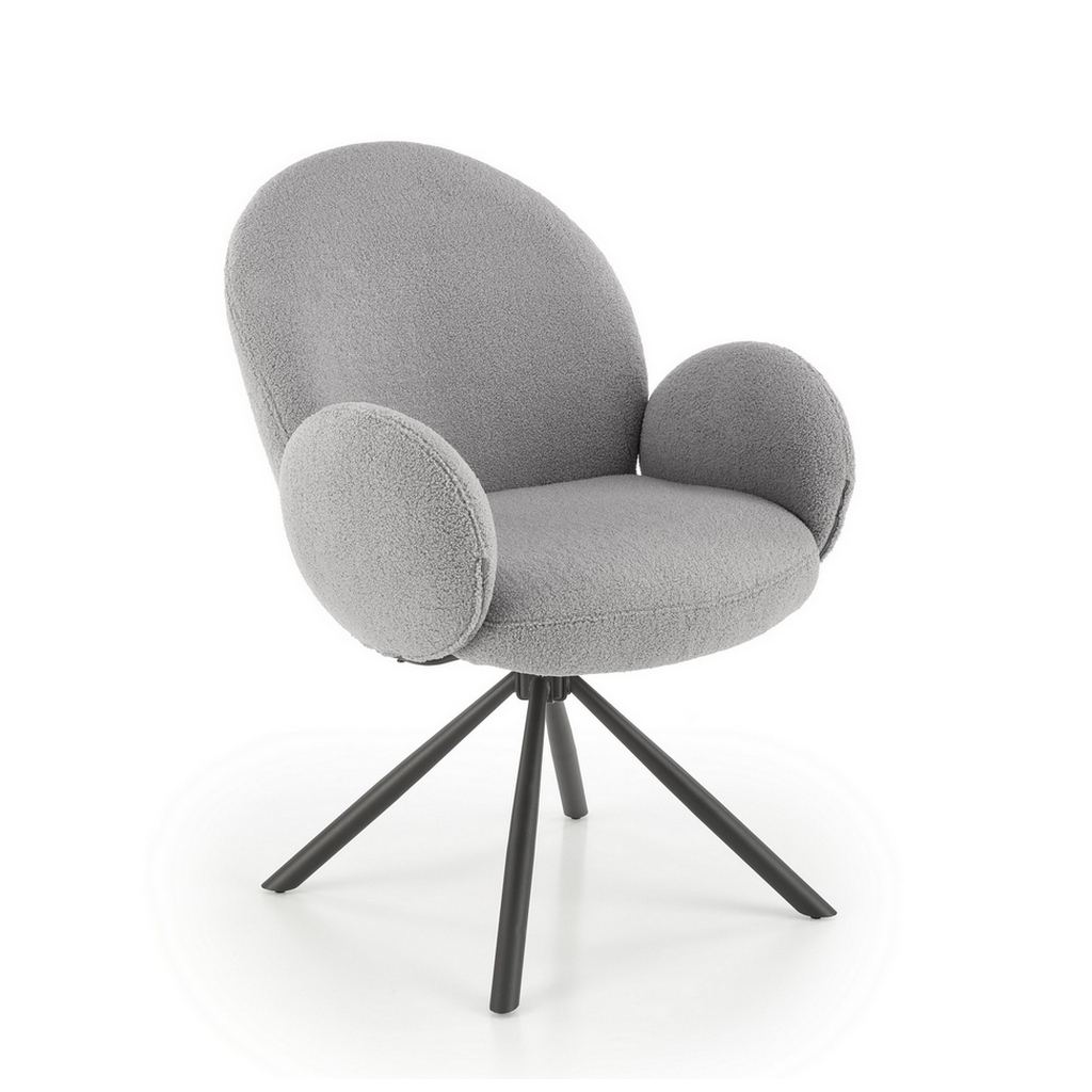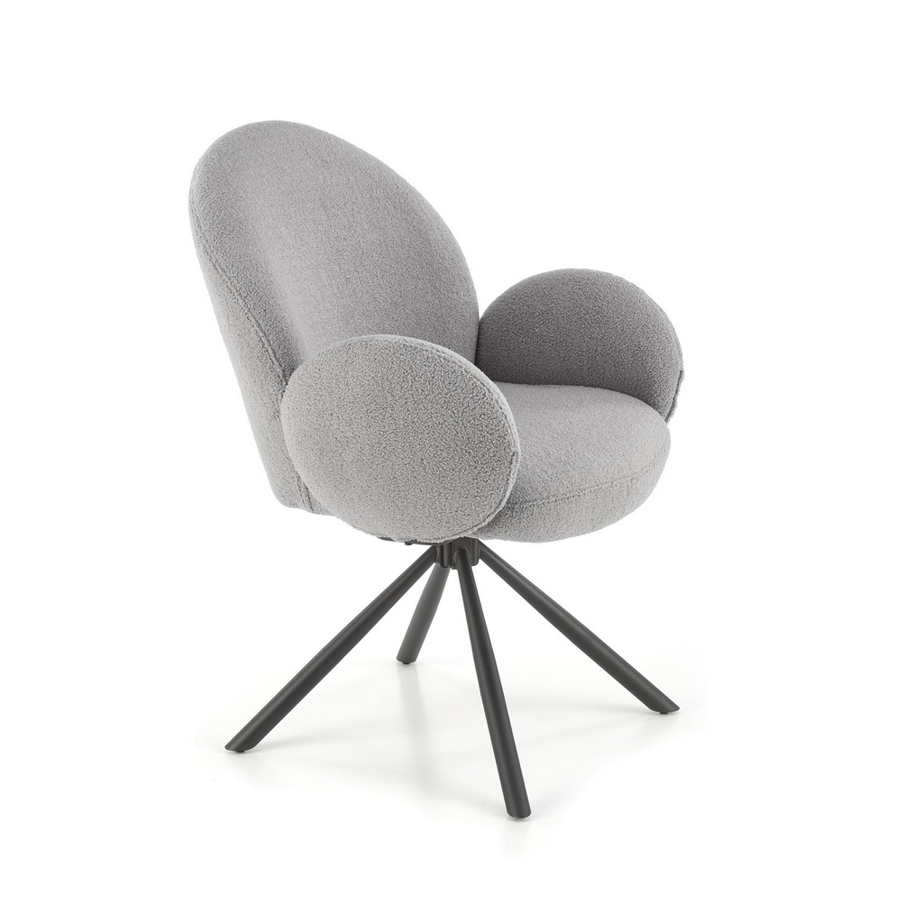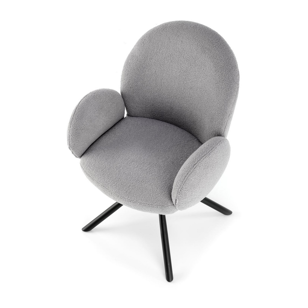 Jídelní židle Lumpy celkovým pojetím svého sedadla připomíná křeslo, má totiž měkoučké čalounění a charakteristicky tvarované područky. To vše je potažené příjemným plyšem.