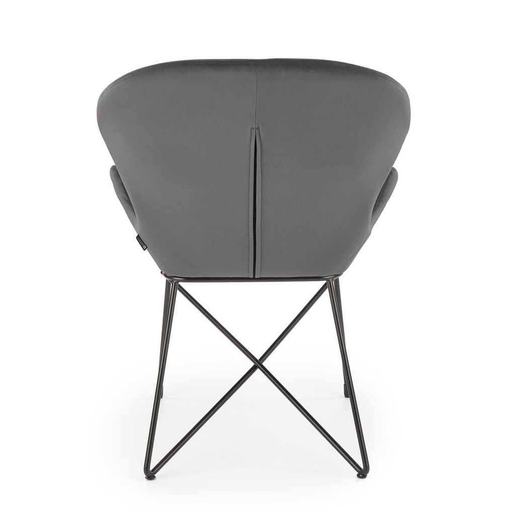 Opěrák i sedadlo jsou čalouněny látkou podobnou sametu, aby se vám sedělo pohodlně, kovová podnož zase zajistí stabilitu.