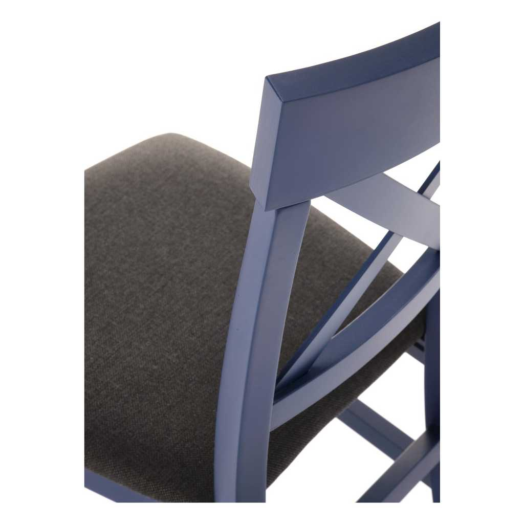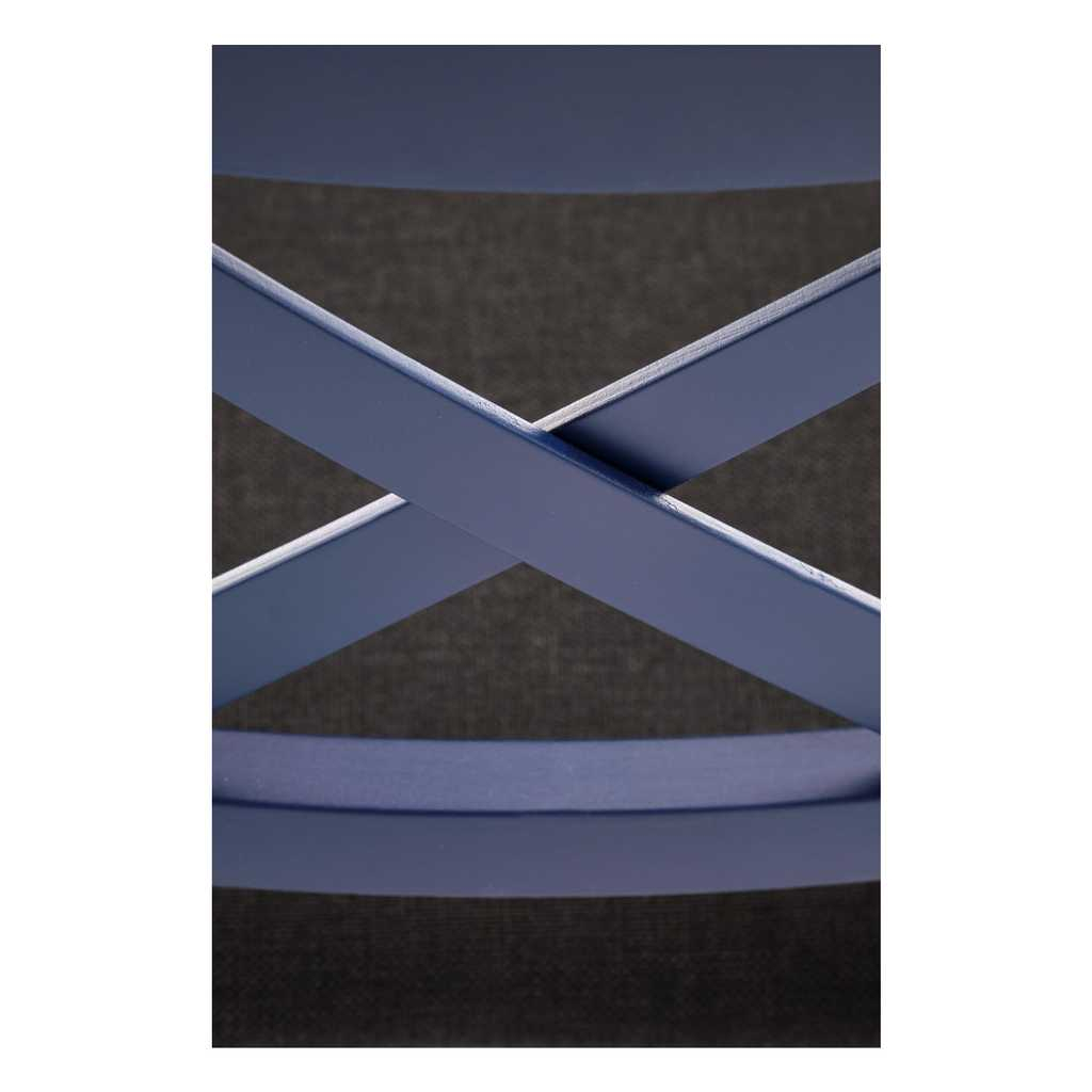 Dřevěné nohy židle spojují výztuhy, díky kterým je židle dokonale stabilní. To platí i o opěradle, jehož příčky ve tvaru "X" jsou hlavním poznávacím prvkem tohoto modelu.