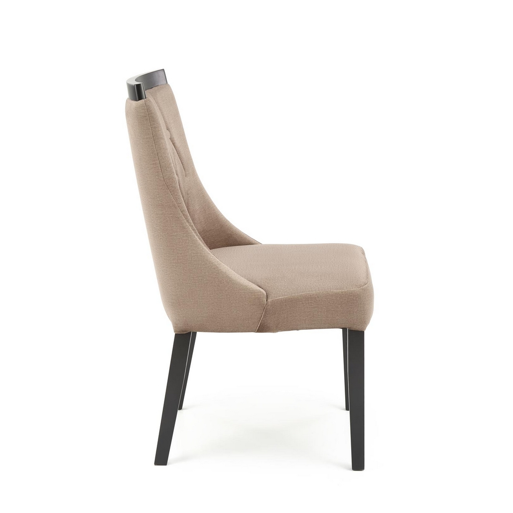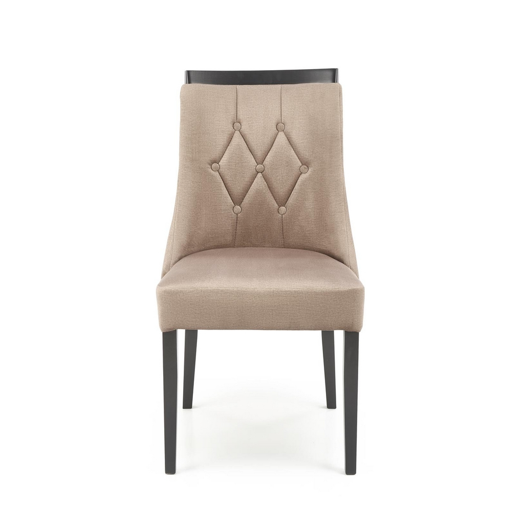 Kostra židle je z bukového masivu v černé barvě. Sedák i opěradlo jsou pak čalouněné sametovou látkou, kterou na opěráku zdobí našité knoflíky s jednoduchým geometrickým vzorem.