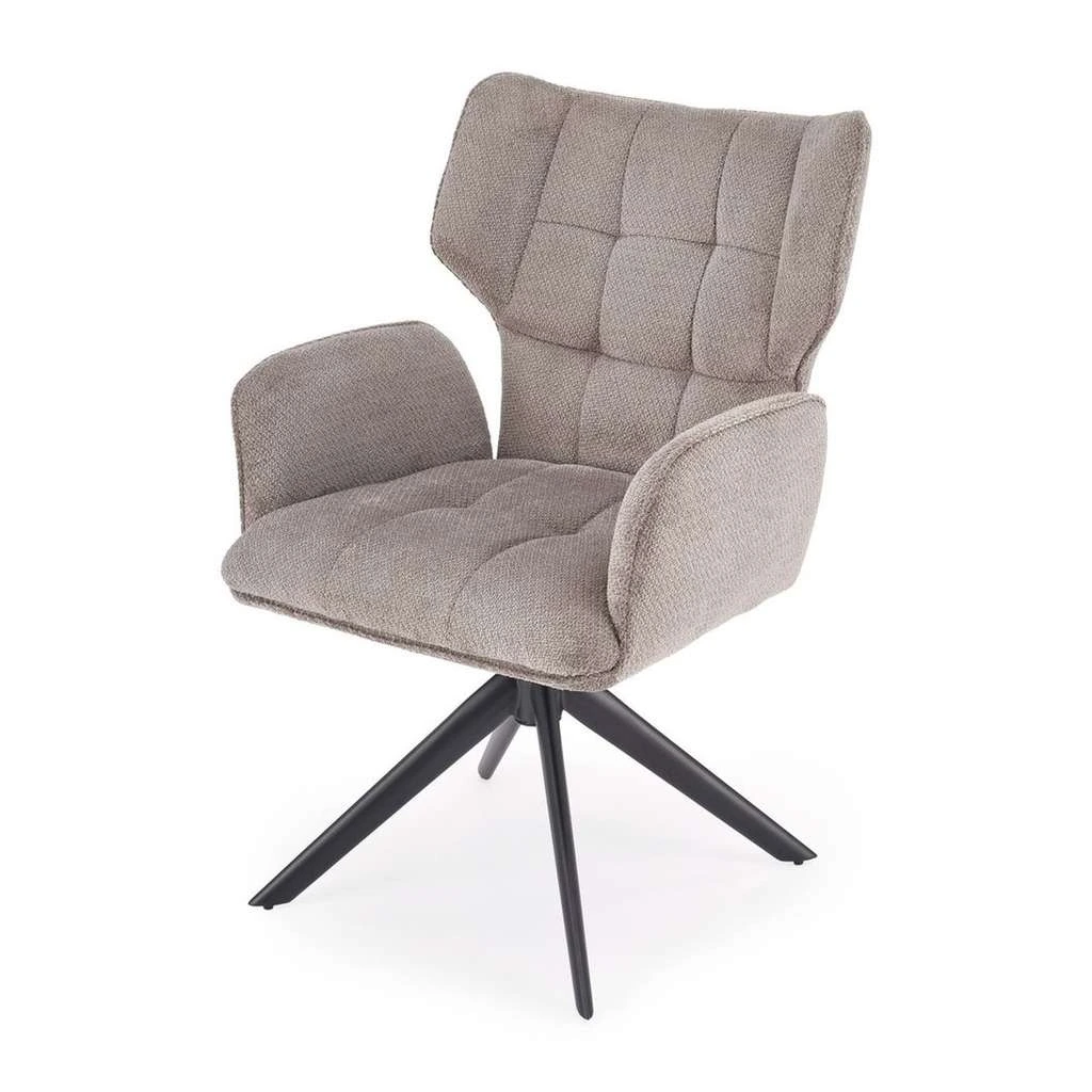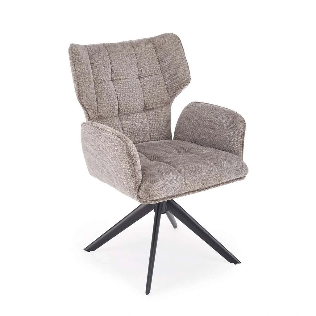 Její pevná kovová podnož zajišťuje stabilitu a dlouhou životnost, zatímco látkové čalounění poskytuje komfort při posezení. Praktickou vlastností je také otočný mechanismus, který usnadňuje pohyb a přístup k jídelnímu stolu z různých úhlů.