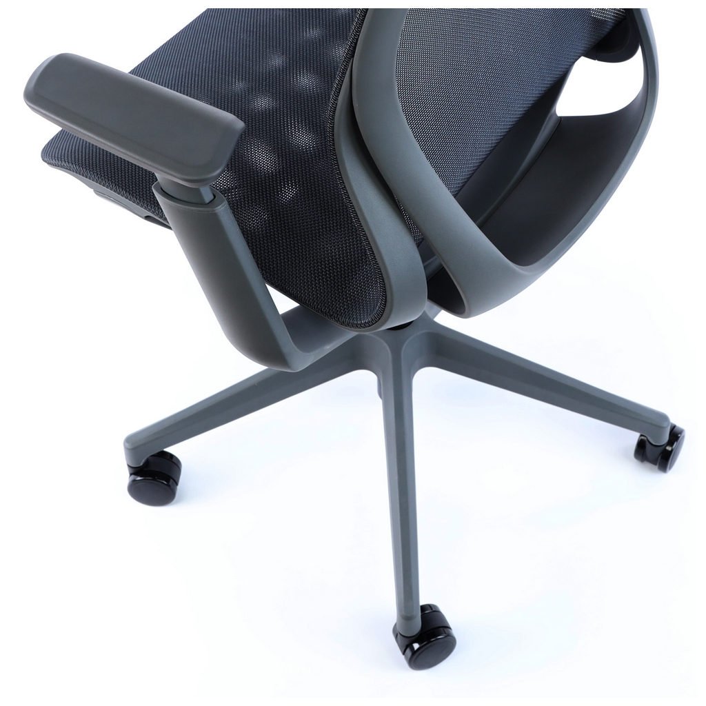 Základnu židle tvoří 5ramenný kříž z tvrzeného plastu. Každé rameno je dlouhé 33 cm a na konci má univerzální kolečko s měkčeným povrchem. Díky nim se židle hravě pohybuje jak po koberci, tak po tvrdší krytině, jako je plovoucí podlaha nebo dlažba.