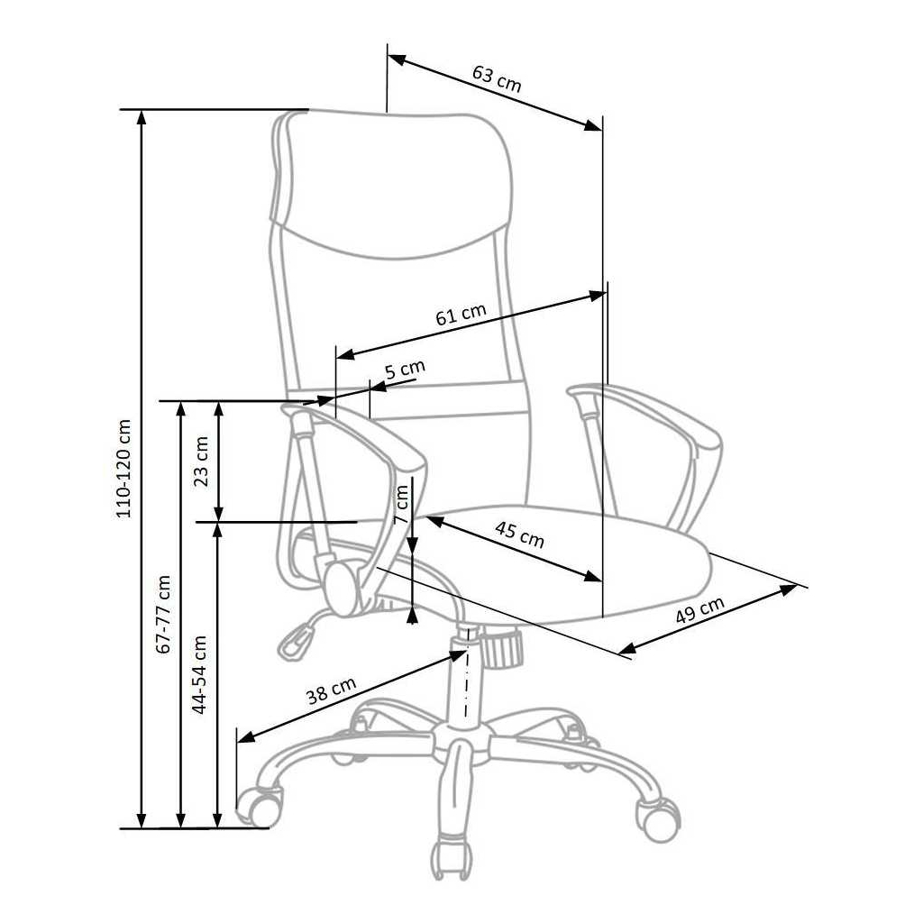 Kancelářská židle Vire je čalouněná 3 typy potahů. Opěrák zad je potažený vzdušnou síťovinou, kontaktní část v oblasti krční páteře moderní eko kůží a sedák pevnou membránovou látkou.