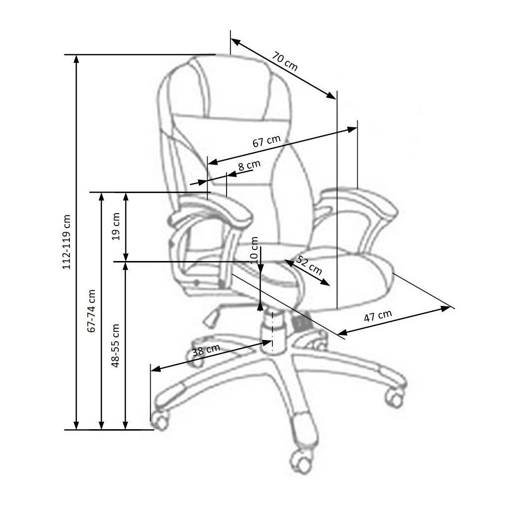 | Minimální výška područek od země: | 67 cm |