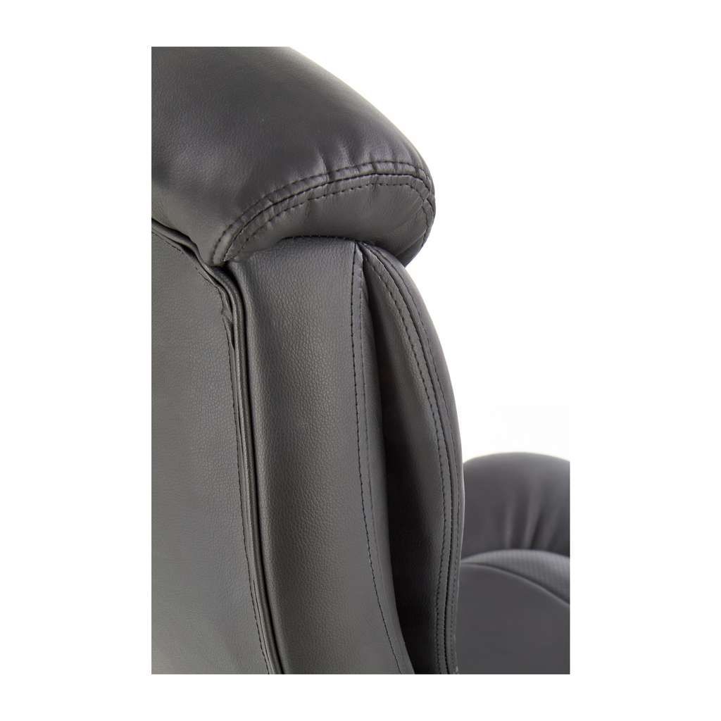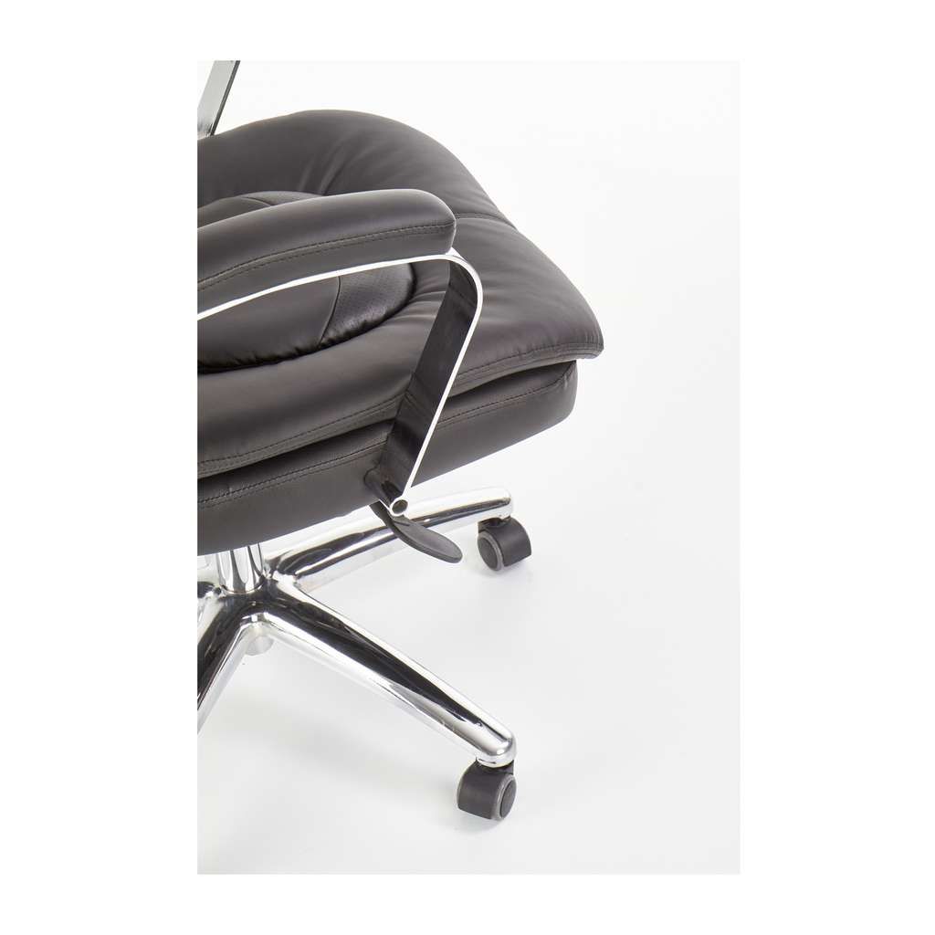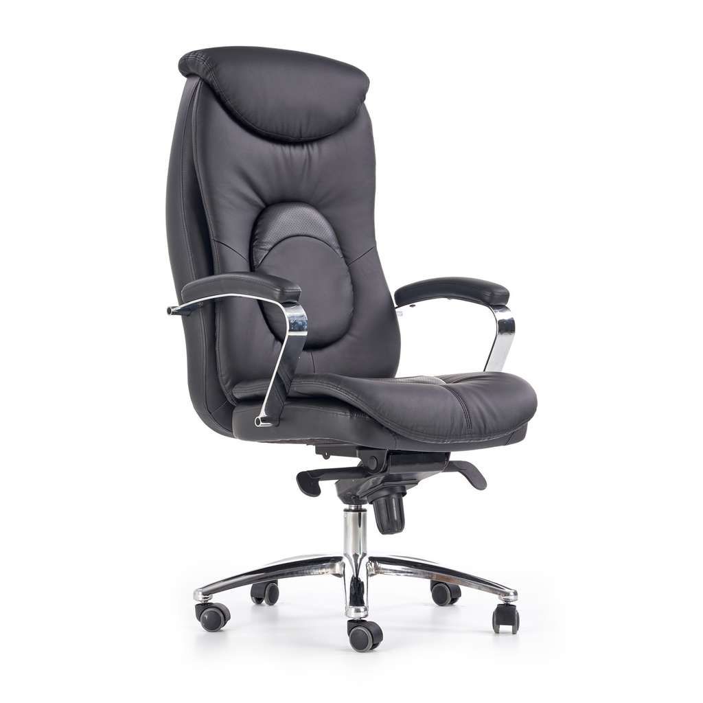 Potah z kůže dodává křeslu elegantní a zároveň odolný vzhled. Praktická houpací mechanika spolu s možností nastavení výšky sedu a opěráku umožňuje přizpůsobit pozici sezení přesně podle vašich potřeb. Pevné područky navíc zvyšují pohodlí bez kompromisů na stabilitě.