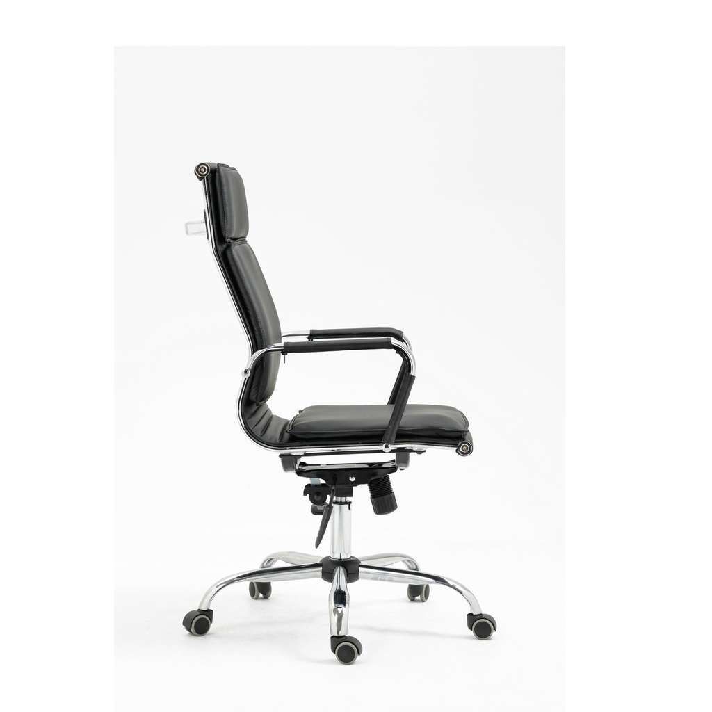 Potah z kůže nejenže přidává kancelářskému křeslu na stylu, ale usnadňuje i údržbu a čištění. Kovový kříž zajišťuje stabilitu a pevnost, zatímco univerzální kolečka umožňují snadný pohyb po kanceláři.