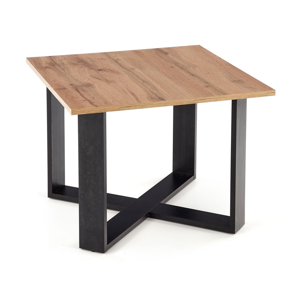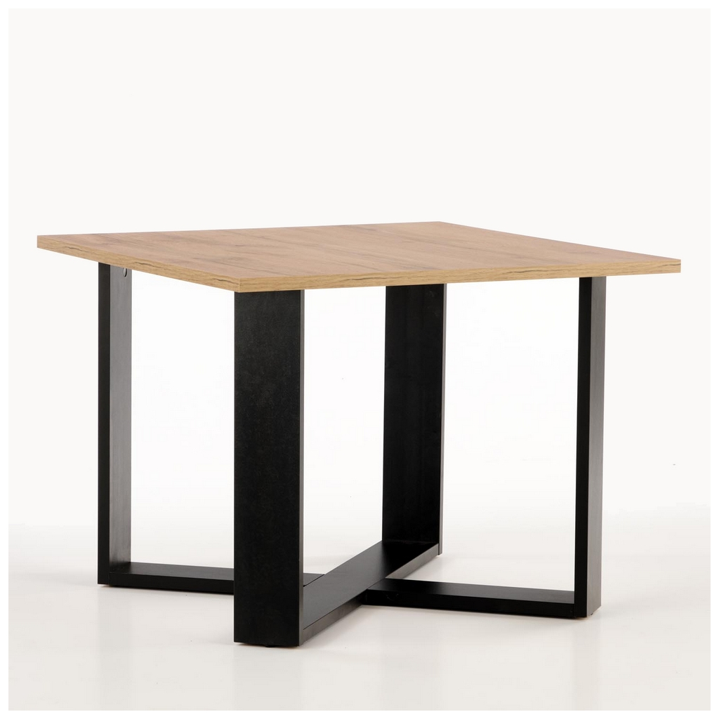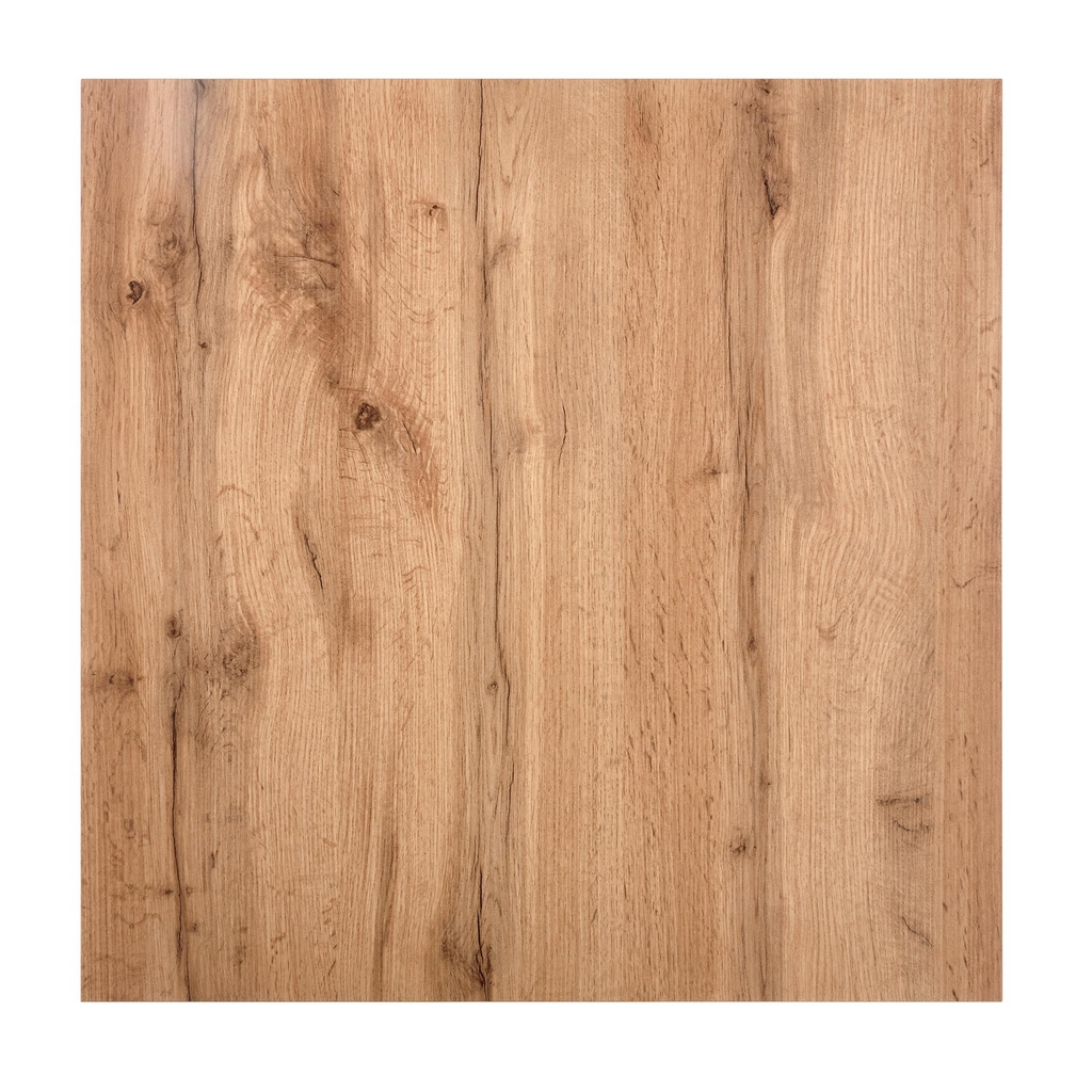 Čtvercová horní deska z dřevovláknitých desek je potažená dýhou v dekoru dřeva. Do místnosti tak vnáší přírodní prvek a vytváří útulno. Podnož rovněž tvoří dřevovláknité desky.
