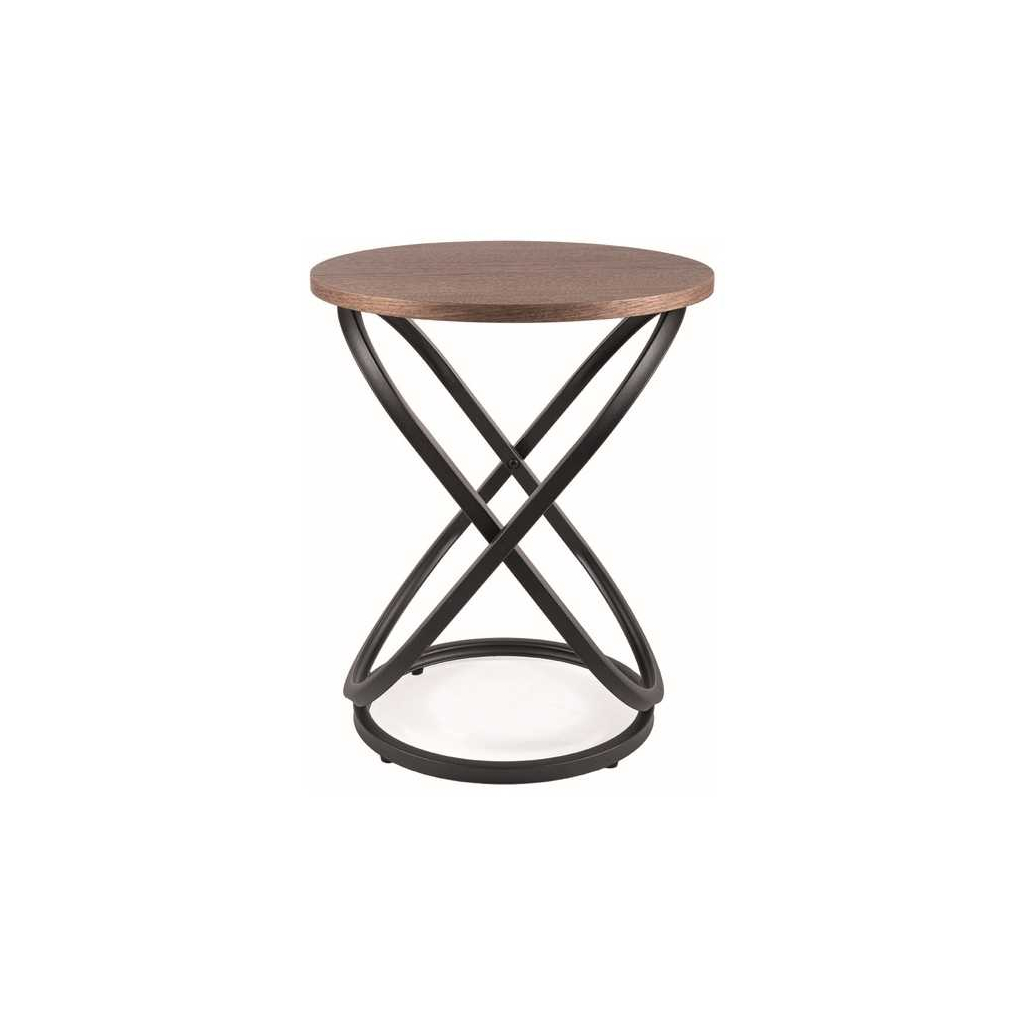 Jeho kulatá deska z dýhovaného MDF nabízí přirozený vzhled dřeva, který krásně kontrastuje s výraznou kovovou podnoží. Tato podnož má elegantně propletený tvar, který dodává stolku dynamiku a pocit pohybu, zatímco zůstává stabilní a pevný. Nosnost 20 kg je ideální pro dekorace, tiskoviny nebo drobné občerstvení.