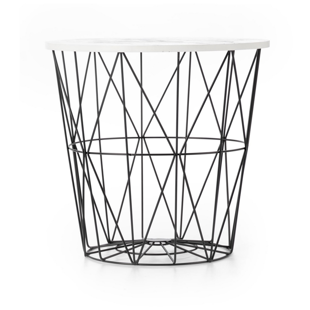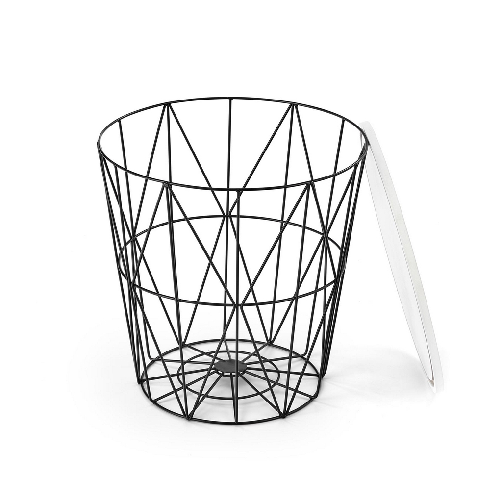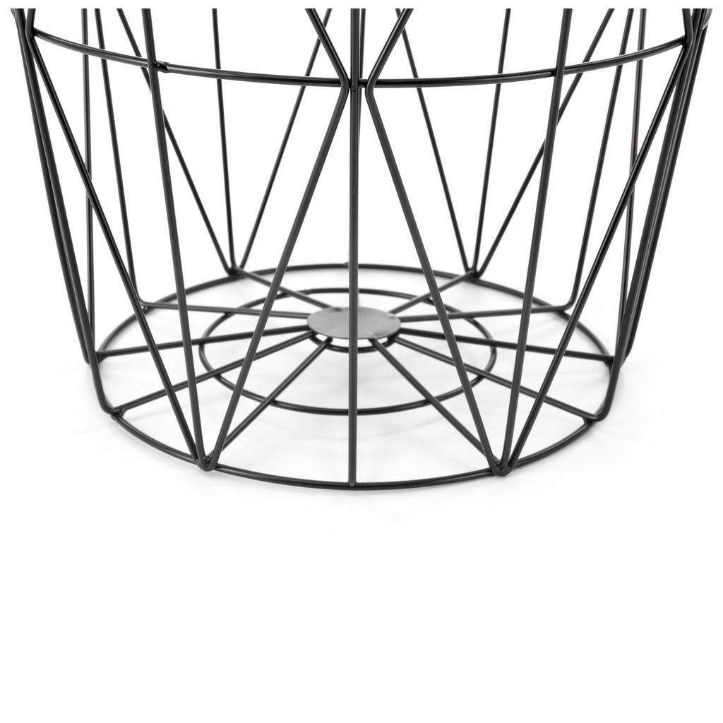 Podnož má pak podobu drátěného koše z černé práškované ocele. Tento prostor využijete např. k uložení přikrývek nebo dekorativních předmětů.