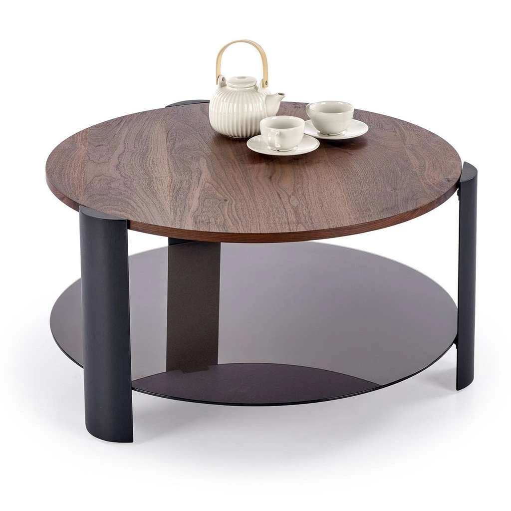 Konferenční stolek Paralia je ideální volbou do každého obývacího pokoje, který hledá spojení funkčnosti a stylu. Jeho kulatý tvar a kombinace skleněné a dřevěné desky vytváří elegantní a nadčasový vzhled, který skvěle doplní interiér v industriálním nebo moderně klasickém stylu.