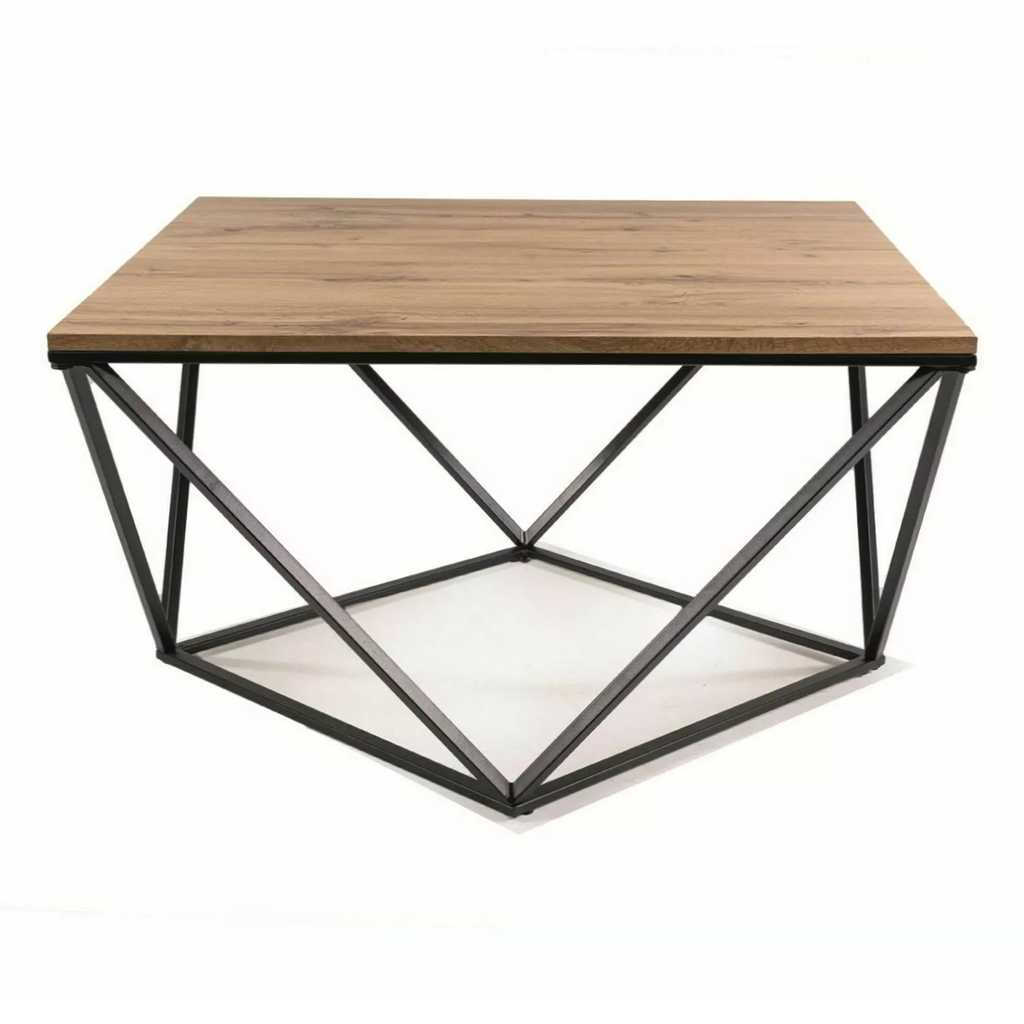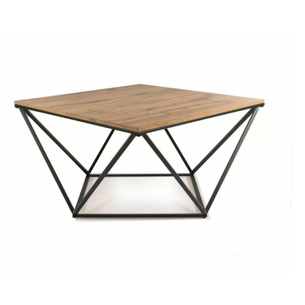 Prostorná čtvercová deska o délce 80 cm z MDF s přírodní dýhou přináší příjemný a teplý vzhled dřeva, který krásně kontrastuje s černou kovovou podnoží. Kovový rám se zajímavým geometrickým tvarem dodává stolku lehkost a vzdušnost. Nosnost stolku je 20 kg.
