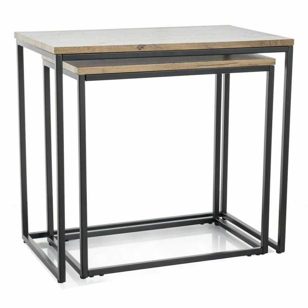 Desky obdélníkového tvaru z dýhovaného MDF s přírodním dekorem působí čistě a lehce, zatímco pevné, avšak svým provedením vzdušené kovové nohy zajistí stabilitu a odolnost. Jako celek působí stolky jako vkusné designové kousky.