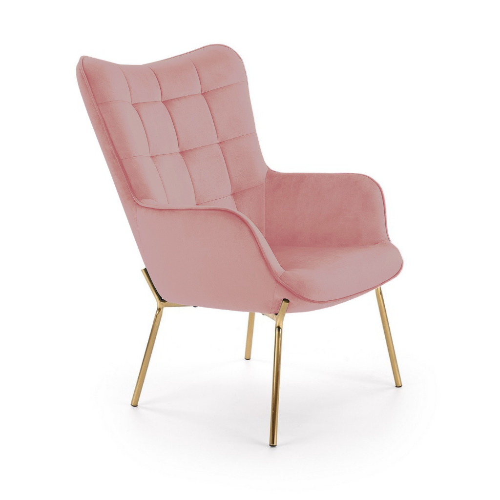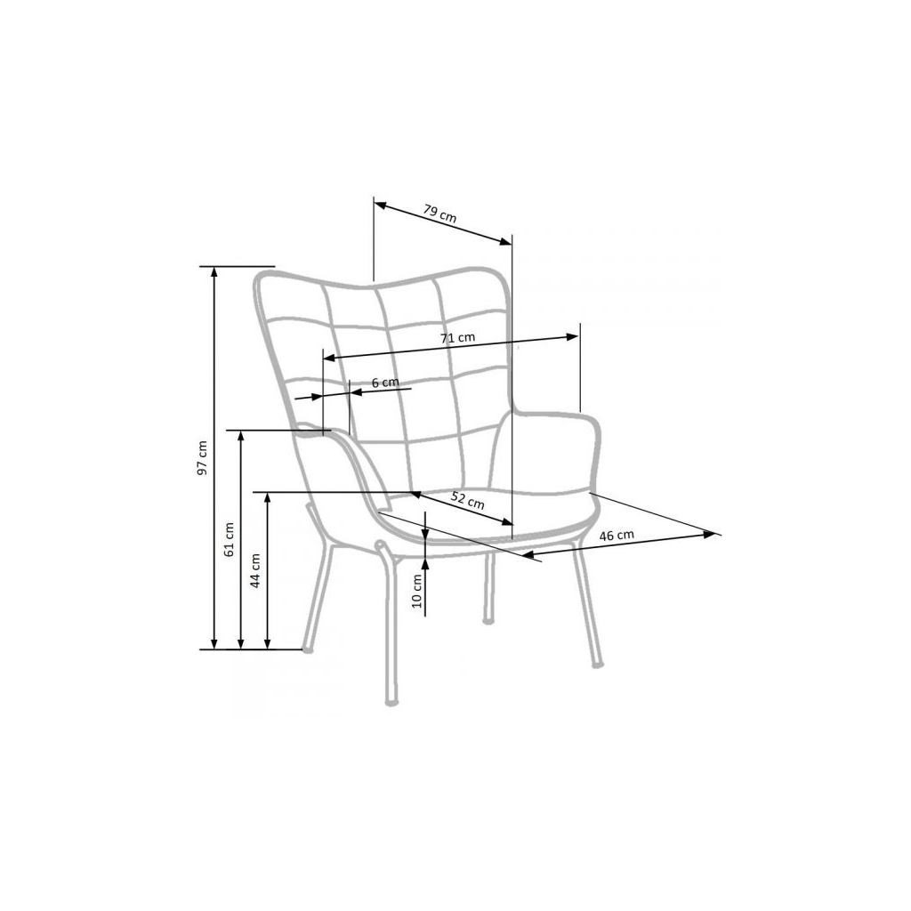Křeslo je čalouněno příjemnou látkou po celém svém povrchu. Nožky jsou vyrobeny z kovu ve zlaté barvě, která dodá na ještě větší eleganci. Nosnost křesla Castel II je 120 kg.