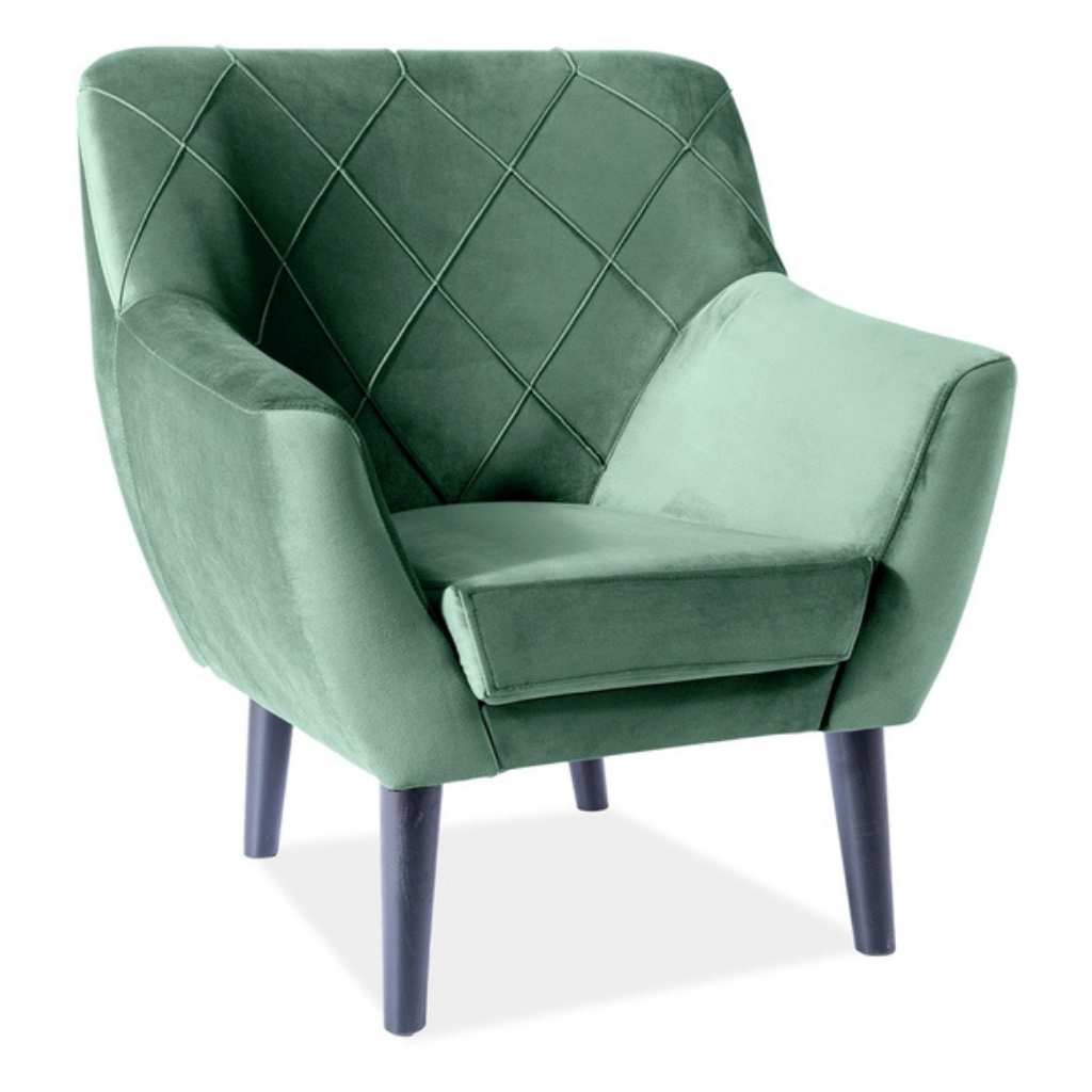 Bohatě polstrované křeslo Kier je čalouněné sametovou látkou. Podnož vyrobená ze dřeva zařizuje stabilitu a pevnost křesla při jeho užívání.