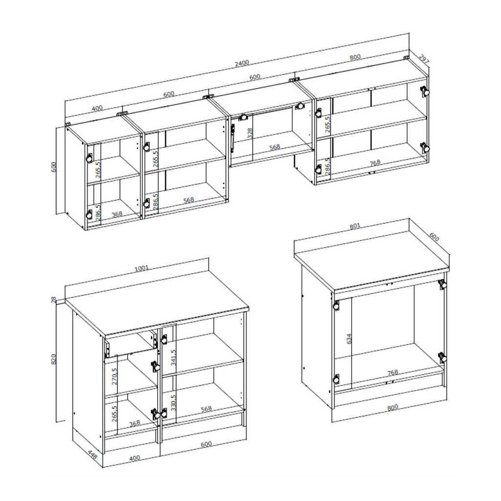 - 3x závěsná horní skříňka (šířky 40, 60 a 80 cm)