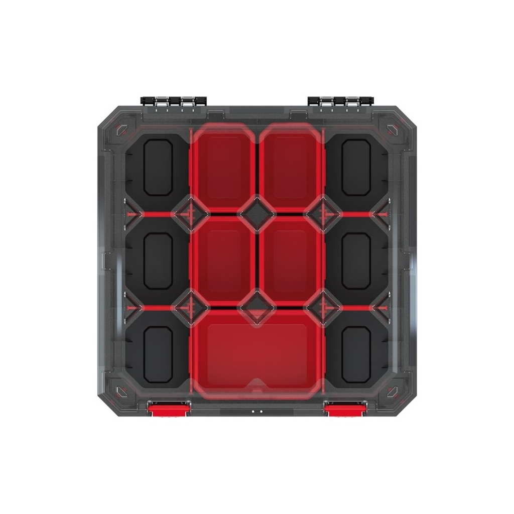 Organizéry představují praktický způsob, jak si udržet pořádek v drobnějším náčiní a součástkách a zároveň je mít vždy po ruce. Tento model je vybaven kombinací odnímatelných přepážek a krabiček, pomocí kterých si úložný prostor přizpůsobíte přesně na míru.